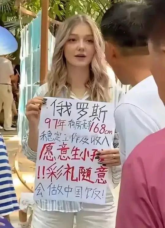 走进上海那熙熙攘攘的周末相亲集市,金发碧眼的俄罗斯姑娘伊莲娜格外引人注目。她身旁展板上的征婚信息简洁而有力:经济学硕士毕业,任职于跨国金融机构,热爱户外运动与古典诗词,期待与中国男士携手共绘生活长卷,彩礼一栏,赫然写着“无”。