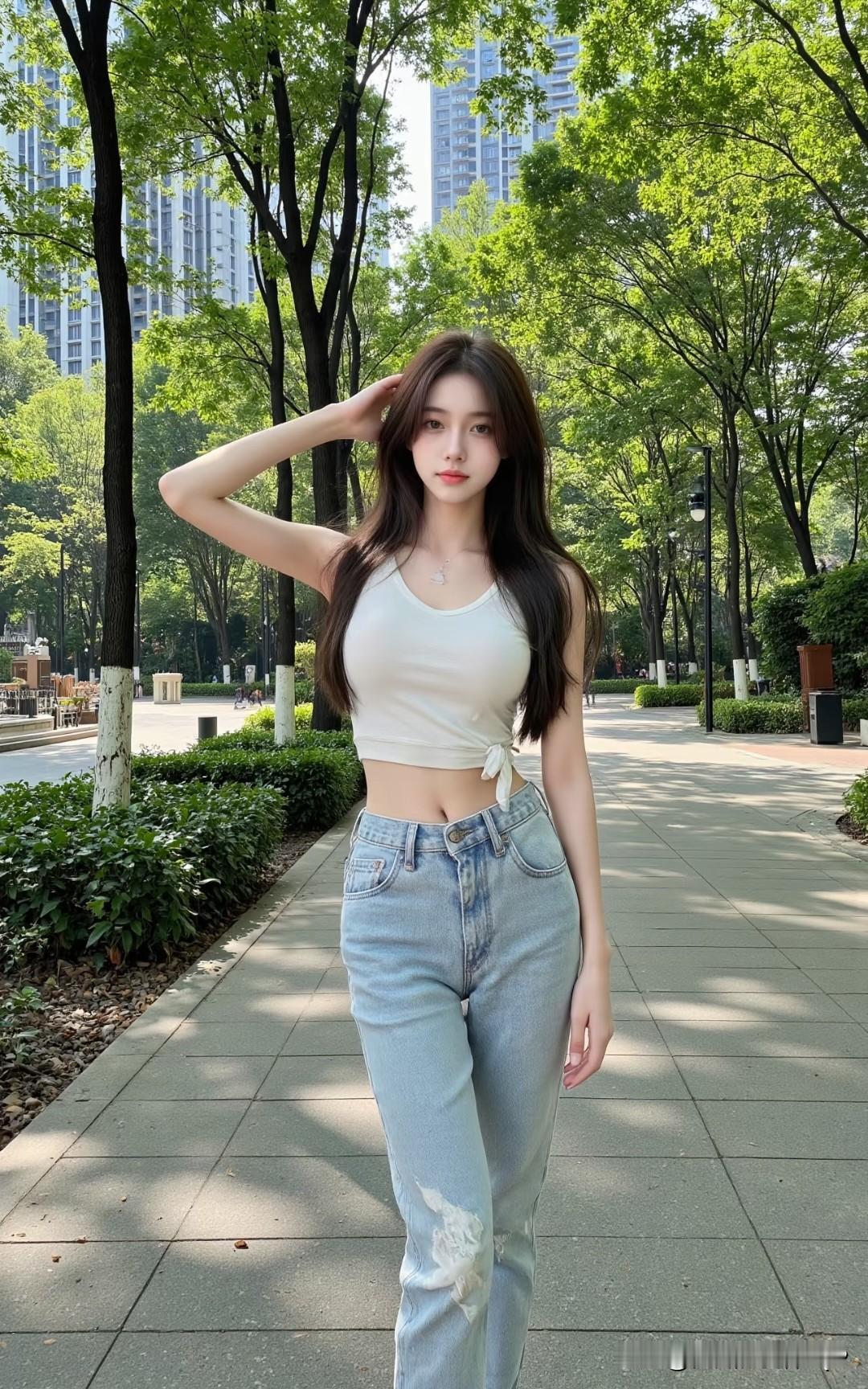 白衬衫第二颗纽扣总被风掀动, 她抱练习册经过走廊, 发梢扫过窗台绿萝。 笑眼弯时