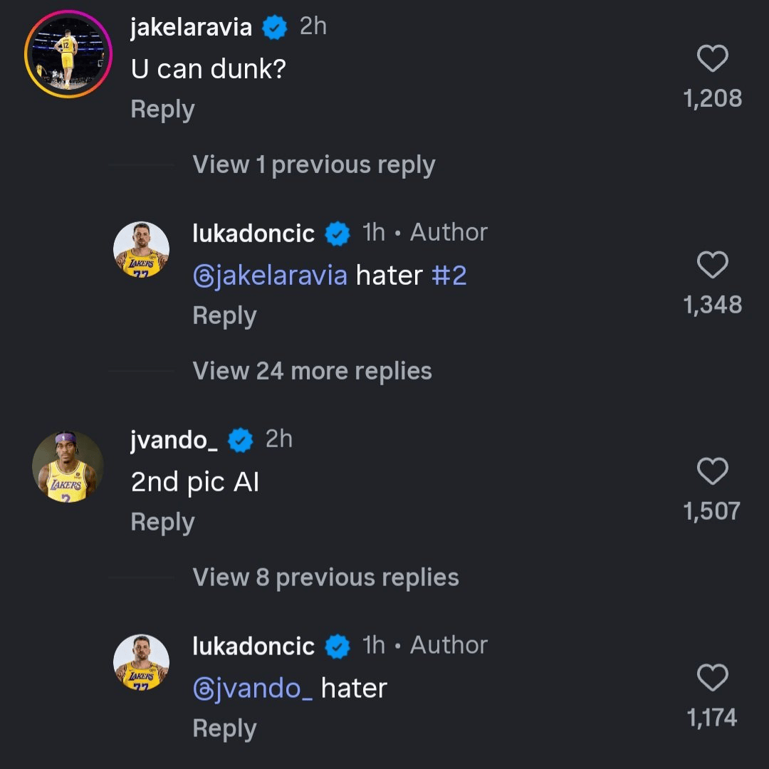 队友范德比尔特评论区回复:“扣篮照是AI做的。”