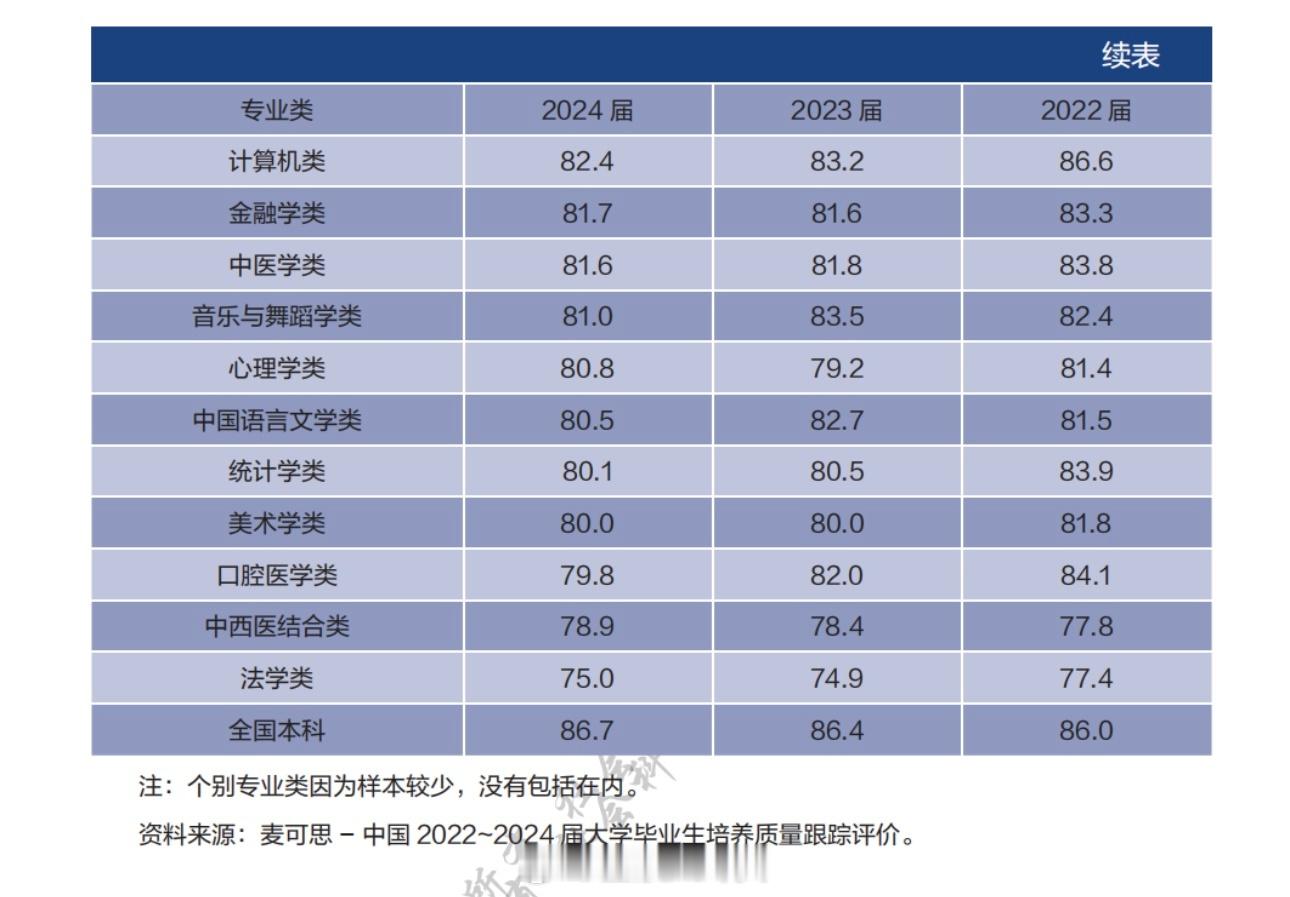 22-24年本科主要专业类毕业生毕业半年后的去向落实率