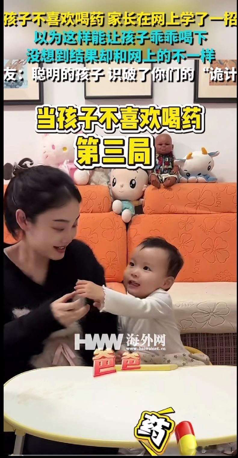 这届娃太精了!家长骗娃喝药的“诡计”当场被戳穿 谁懂啊!家长学网上的招骗娃喝药,结果被1岁娃反套路了! 本来想假装“这是好吃的”哄娃喝,结果娃眼睛跟雷达似的,一眼就盯上了旁边的药,伸手就去扒拉——那小眼神明摆着:“别装了,我早看见药了!” 网友都笑疯:这哪是娃啊,是揣着明白装糊涂的“小机灵鬼”!现在的孩子精得跟人精似的,家长这点“小诡计”根本不够用! 咱就是说,哄娃喝药这事儿,真是一届比一届难!这娃的反应,像极了我小时候看破我妈“糖里裹药”的样子~