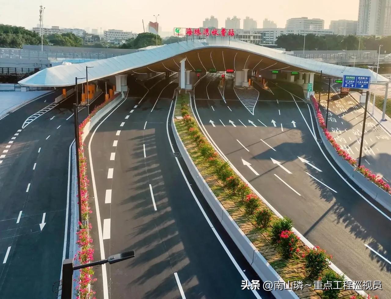 东晓南路-广州南站连接线(含海珠湾隧道)今日开通,暂免费通行! 广南快速路(含收费段海珠湾隧道和免费段连接线南段工程)将于11月12日中午12:30通车。 该道路通车后,从广州南站到市中心的车程将缩短至约15分钟,有效增强南站区域的交通疏解能力。 试运行期间,海珠湾隧道暂不收取通行费用。 广南快速路北起东晓南高架,向南延伸直达广州南站,以南浦大道为界划分为南北两段。 北段为企业投资经营的海珠湾隧道,全长4.36公里,按双向六车道标准建造;南段为政府投资建设的东晓南路—广州南站连接线,全长5.85公里,同样为双向六车道设计。