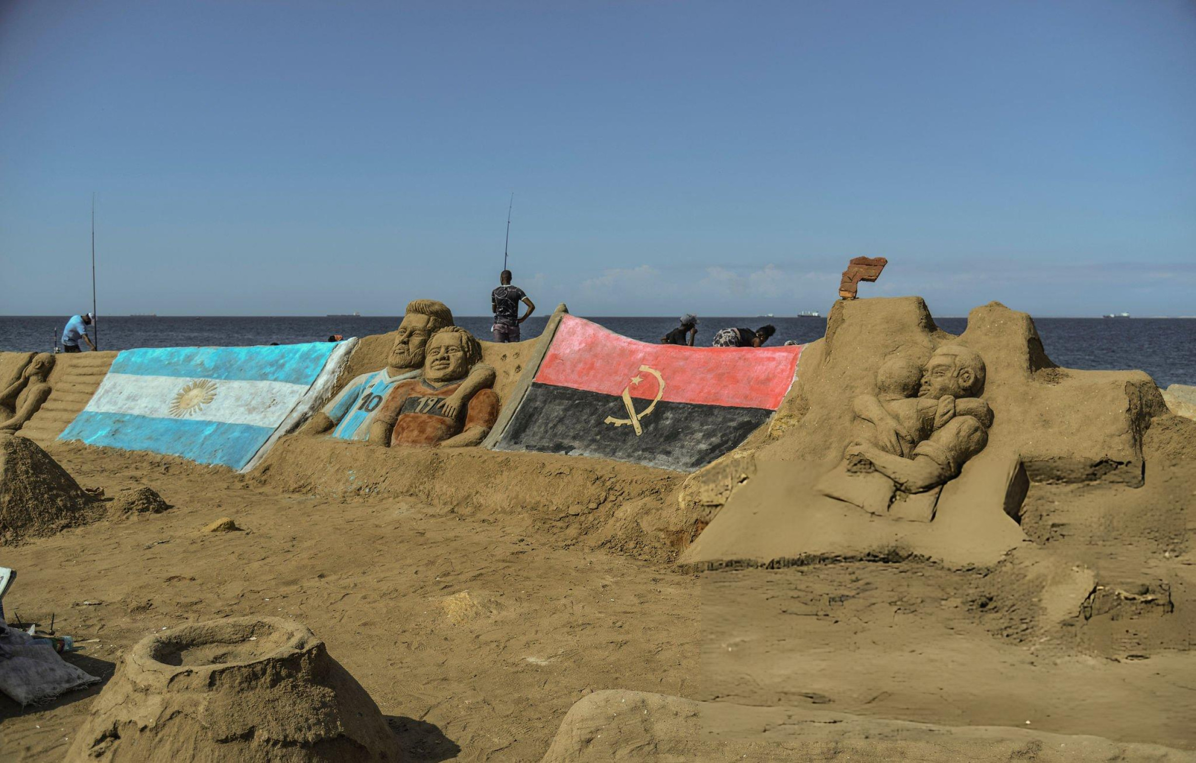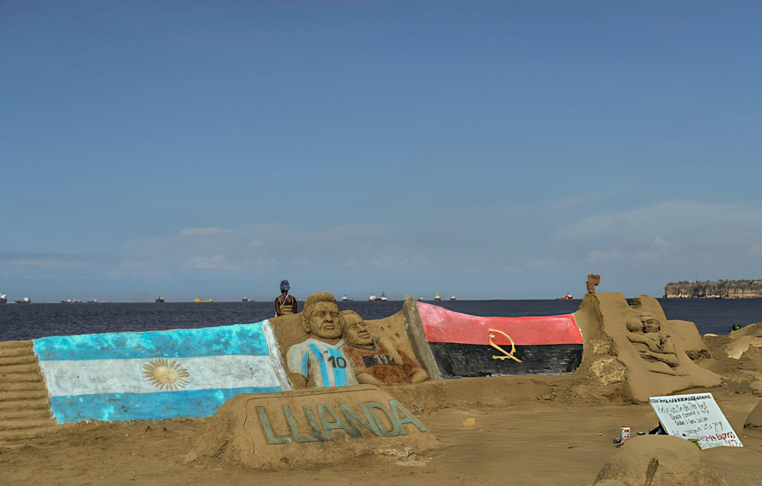 安哥拉为了预热对阵阿根廷的友谊赛,在罗安达岛海边弄了个梅西和安哥拉球员劳林多·奥雷利奥的沙雕!这是真沙雕!在沙雕旁分别是阿根廷和安哥拉国旗!