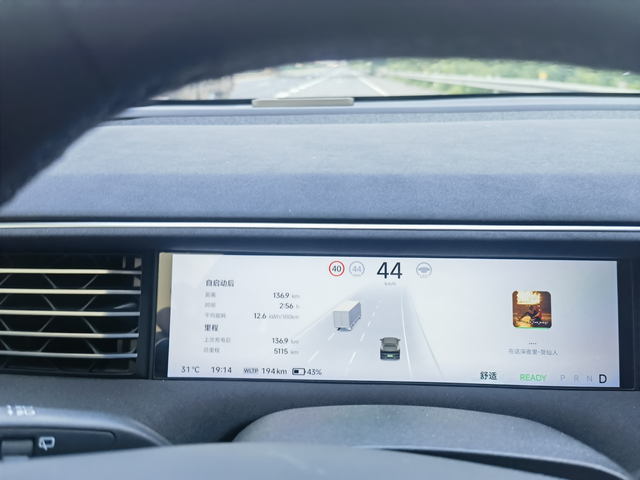 高速顶着120迈限速跑续航记录 算上驾驶员3个人,室外温度31度,空调25度2档风,第一张图是刚刚通过匝道并道进高速路段拍的,83.5公里为到收费站的纯高速的里程,图二是当时WLTP的剩余里程,图三是行驶中拍的,全程ACC辅助驾驶,压着120公里限速跑,当然中间也有为数不多的降速或者提速超车,最后一张图是到达收费站的WLTP剩余里程,经过计算,WLTP掉了194−89=105公里,实际跑了83.5公里,WLTP达成率为79.5%,换算成CLTC打折率为64.6%