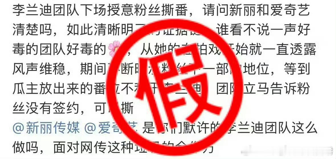 李兰迪方辟谣工作室授意撕番的传闻