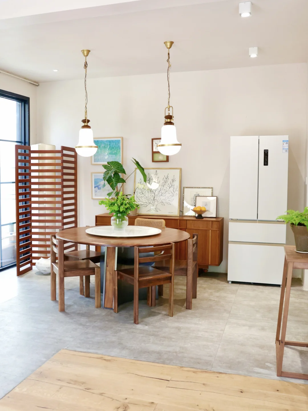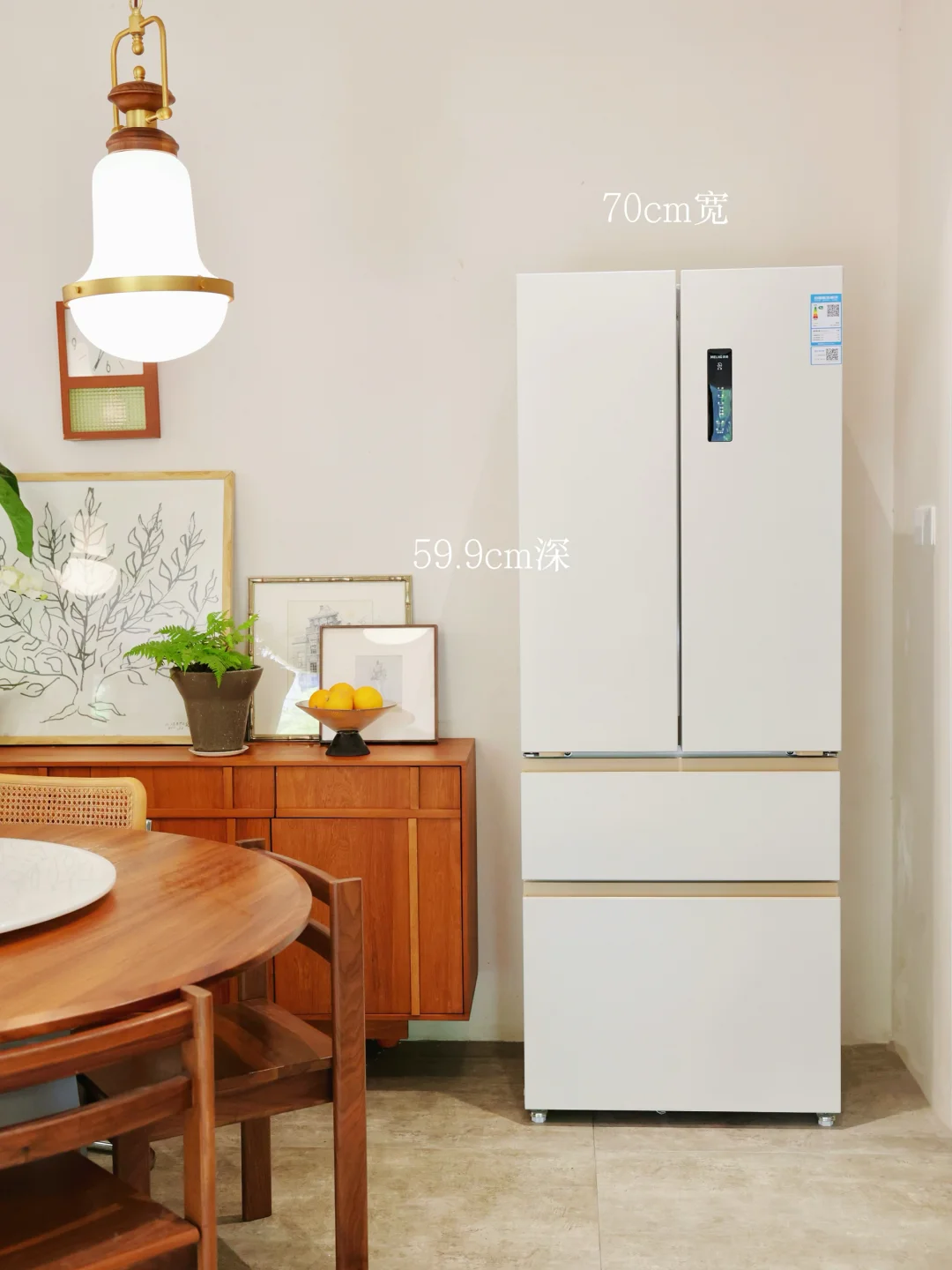 家人们,今天必须给你们分享我家餐厅新添的“宝藏成员”——美菱小确杏420冰箱,它简直是我家原木自然风餐厅的绝配!