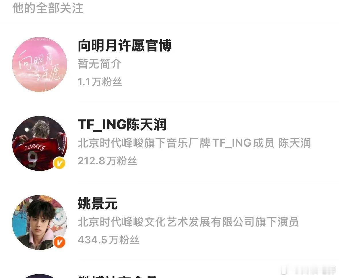 11月12日,开通个人工作室账号,陈天润新账号认证是演员,且只关注了tf1代
