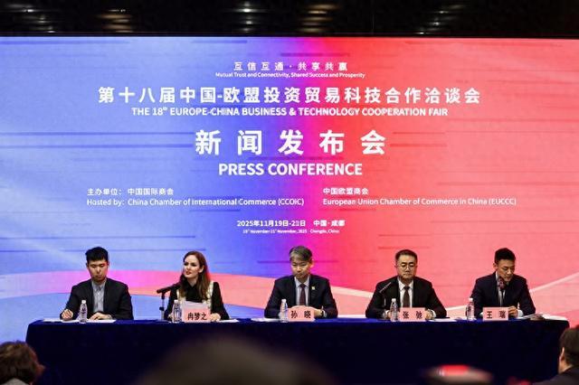 中国网11月12日讯(记者王冉)11月12日,第十八届中国-欧盟投资贸易科技合作洽谈会(以下简称“欧洽会”)新闻发布会在北京举行。中国国际商会秘书长孙晓,中国欧盟商会副主席、西南分会主席冉梦之,成都市政府副秘书长张弛出席发布会,介绍本届欧洽会筹备情况并回答记者提问。