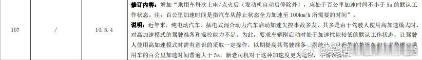 新国标征求意见稿,电动车、插混车等新能源车,启动后应处于零百加速大于5秒的默认工作状态。为了防止驾驶员对车辆不熟悉,加速过快,不容易操控。那么,你觉得这个国标征求意见稿怎么样呢?原文如下:“纯电动、插电式混合动力载客汽车应具备踏板误踩加速抑制功能,在静止、蠕行时能够检测,抑制动力输出并通过一个明显的信号装置 (例如:声或光信号) 提示驾驶人。”“近年来,纯电动汽车、插电式混合动力汽车启动加速失控事故多发,其多是由于驾驶人使用高加速模式时,对高加速模式的驾驶准备和操控能力不足。为此,要求车辆刚启动时处于加速性能较低的默认工作状态,让驾驶人使用高加速模式时需有意识的采取一定操作,以期提高其驾驶准备。”其实现在很多车都有驾驶模式,在采用ECO节能模式时,动力输出会减弱很多,这在油车时代很普遍。()