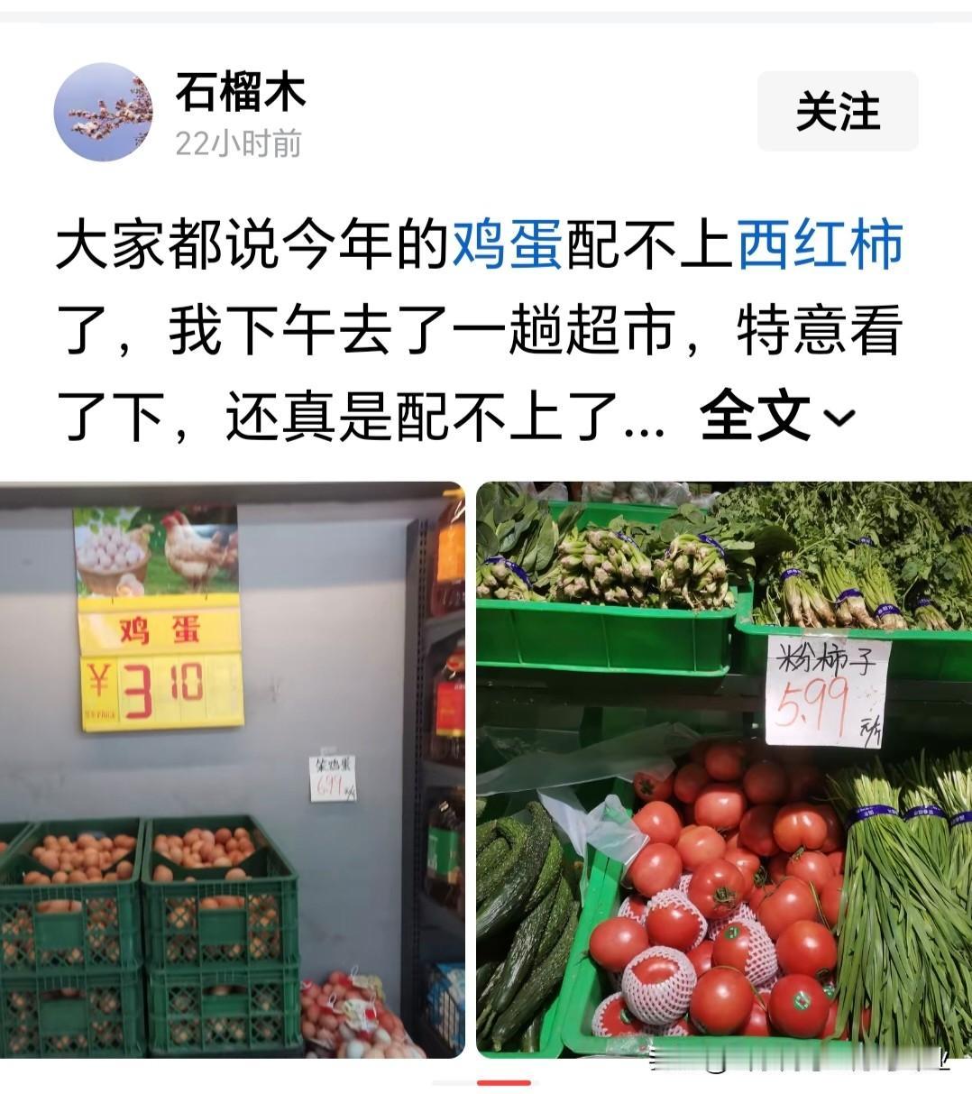 西红柿炒鸡蛋,变成了鸡蛋炒西红柿!这两种食材的价格反了个。 过去鸡蛋五六块钱一斤,西红柿一般两三块钱一斤。现在反过来了:鸡蛋两三块钱一斤,西红柿五六块钱一斤。 西红柿贵了,主要原因是北方蔬菜产区秋雨不断,导致了蔬菜的减产。 鸡蛋这么便宜,还是很少见的现象,具体原因不是很清楚,产量高应该是其中的一个因素吧。 喜欢吃西红柿炒鸡蛋的,现在少放西红柿多放鸡蛋吧,鸡蛋炒西红柿也挺好的!