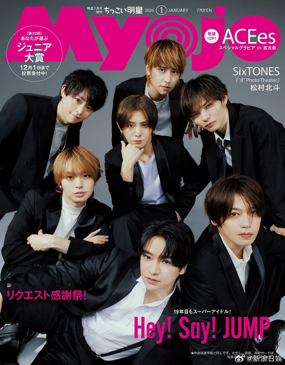 Hey!Say!JUMP将登上2025年1月号《Myojo》常规版与迷你版的封面!