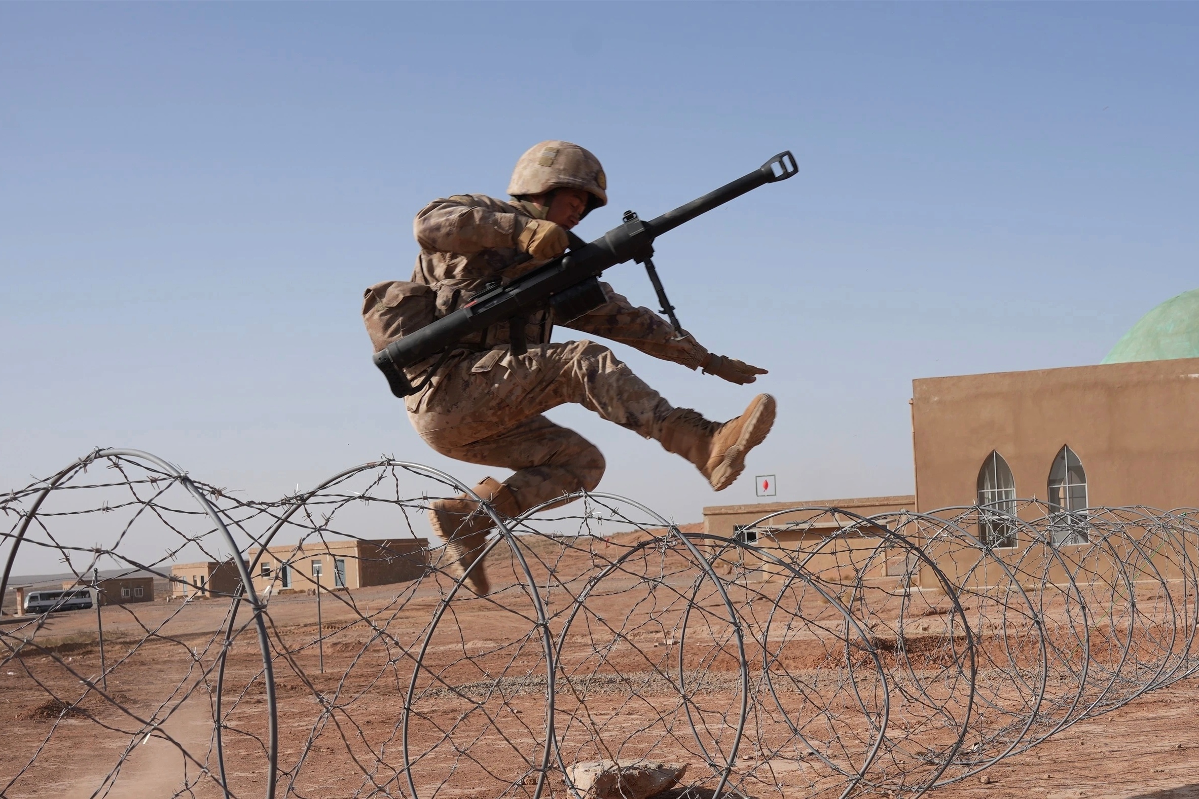 拎着20斤的大号棍子跃进跳跃铁丝网还行