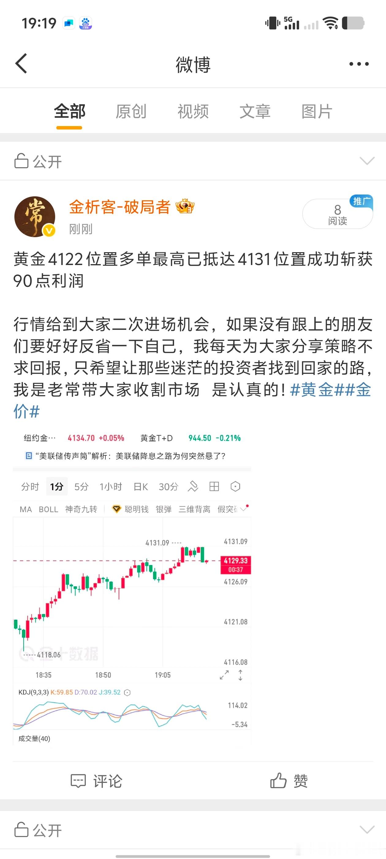 黄金4127多截止目前4137已斩获100点!跟上的朋友注意护利!