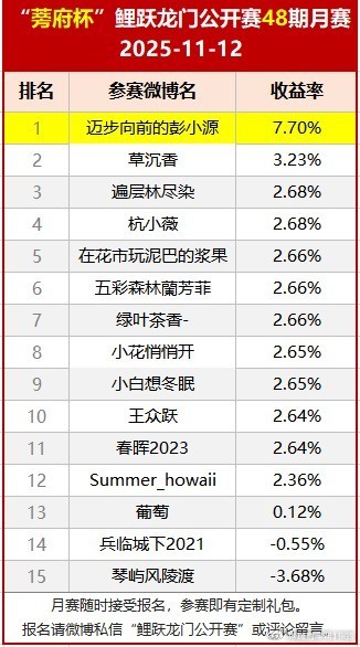 很明显,排在中间的选手,持仓是相同的。友谊第一,比赛第二。期待第48期,能带来精彩。衷心祝各位选手好运!