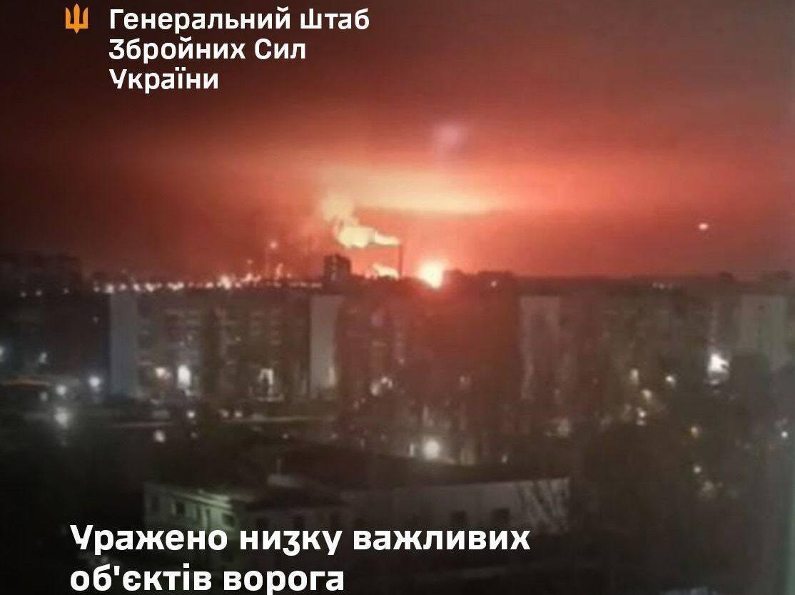乌克兰国防军部队对敌方的军事经济目标进行了系列精准打击。乌克兰武装部队总参谋部公布了详情: 萨拉托夫炼油厂生产20多种石油产品——包括汽油、柴油和重油。工厂区域发生大规模火灾,后续影响正在核实中。 击中了位于克里米亚半岛和乌克兰南部被占领土的关键海上燃料供应节点——“海洋石油码头”股份公司。 击中了顿涅茨克的占领军物资保障仓库,以及奥切雷蒂诺地区敌军人员集结点。