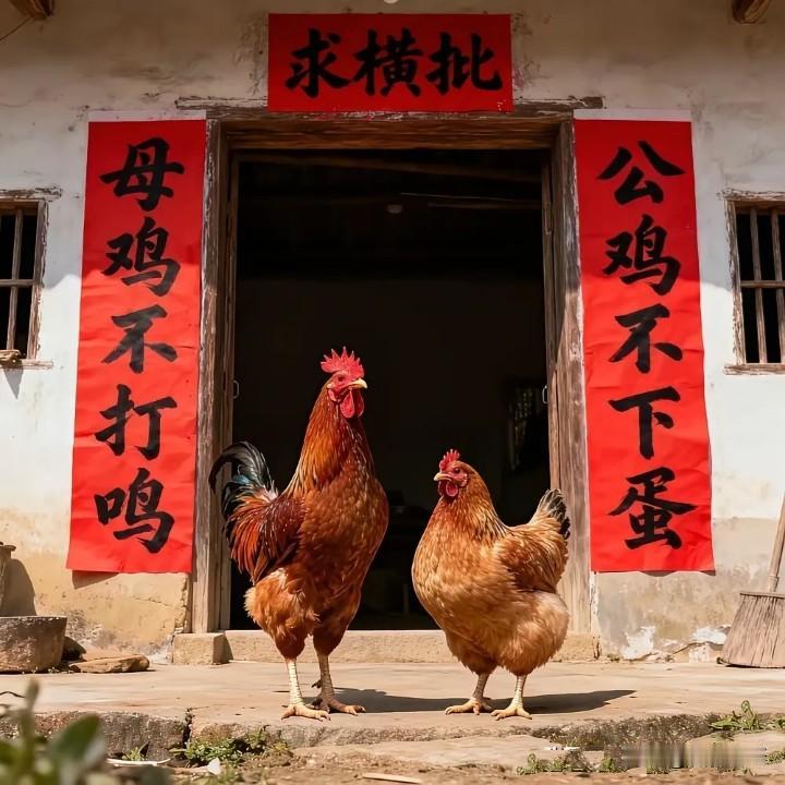 老公发来一张图片,上联是母鸡不打鸣,下联是公鸡不下蛋,老公让我把横批写出来。还说只要我写出来了,就给我300块钱,我想了很久。实在是想不出来,朋友们,快帮帮我,这个横批到底怎么写啊?
