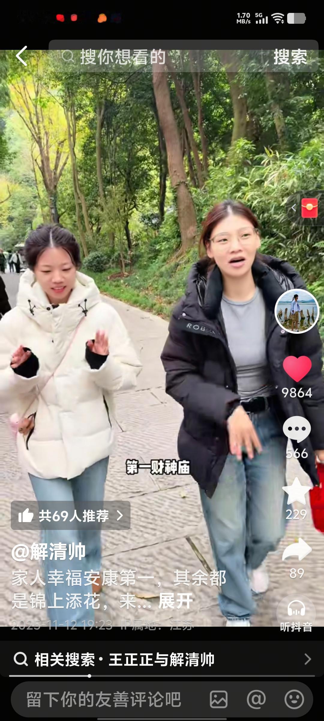 宠妻天花板!解清帅灵隐寺抱抽筋媳妇超甜,为粉丝祈福还带团队逛财神庙[心] 解清帅带着王正正,孟月文静一起跑灵隐寺为粉丝们祈福。正正抽筋了, 帅帅抱起媳妇儿就走。真是太恩爱了。这次帅帅他们太有诚意了。直播的时候也是以梁静为主。 三个女孩子成为卖货的主力,销量也不错。作为奖励,帅帅带他们来到灵隐寺飞来峰。 去了财神庙。抽签祈福。祝所有的粉丝朋友身体健康,财源广进!最搞笑的是大嫂不在家, 大哥和满满可开心了。每天都过着吃了睡,睡醒了玩的生活。梦月到评论区警告 他们马上就回家了。这一家人现在这欢乐的样子。大家都很喜欢,纷纷送上祝福。