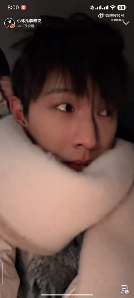 有一瞬间的错觉,以为李昀锐裹在被子里直播,毛茸茸的大白围巾好可爱,像个糯米团子