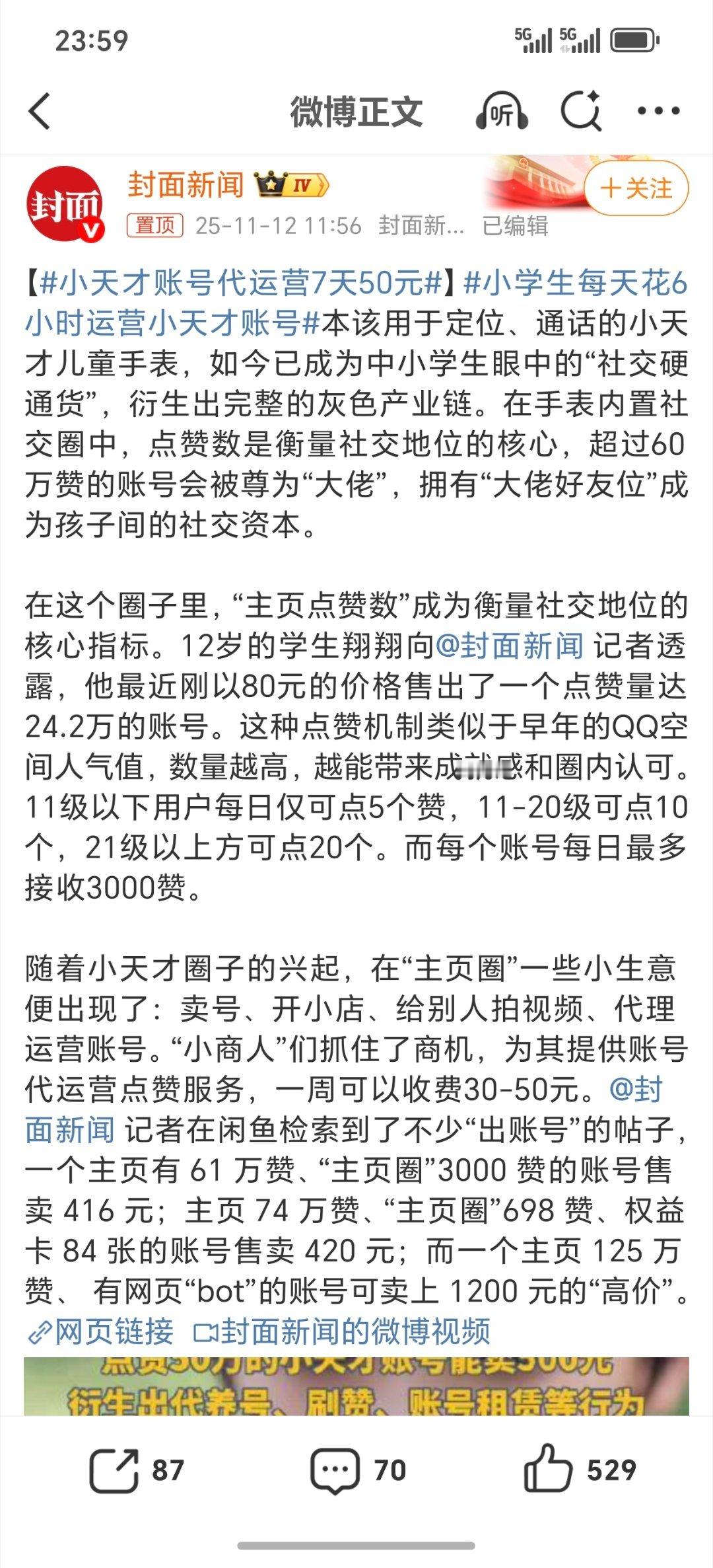 小学生每天6小时运营帐号?感觉这比好多媒体老师运营自己的帐号时间还长