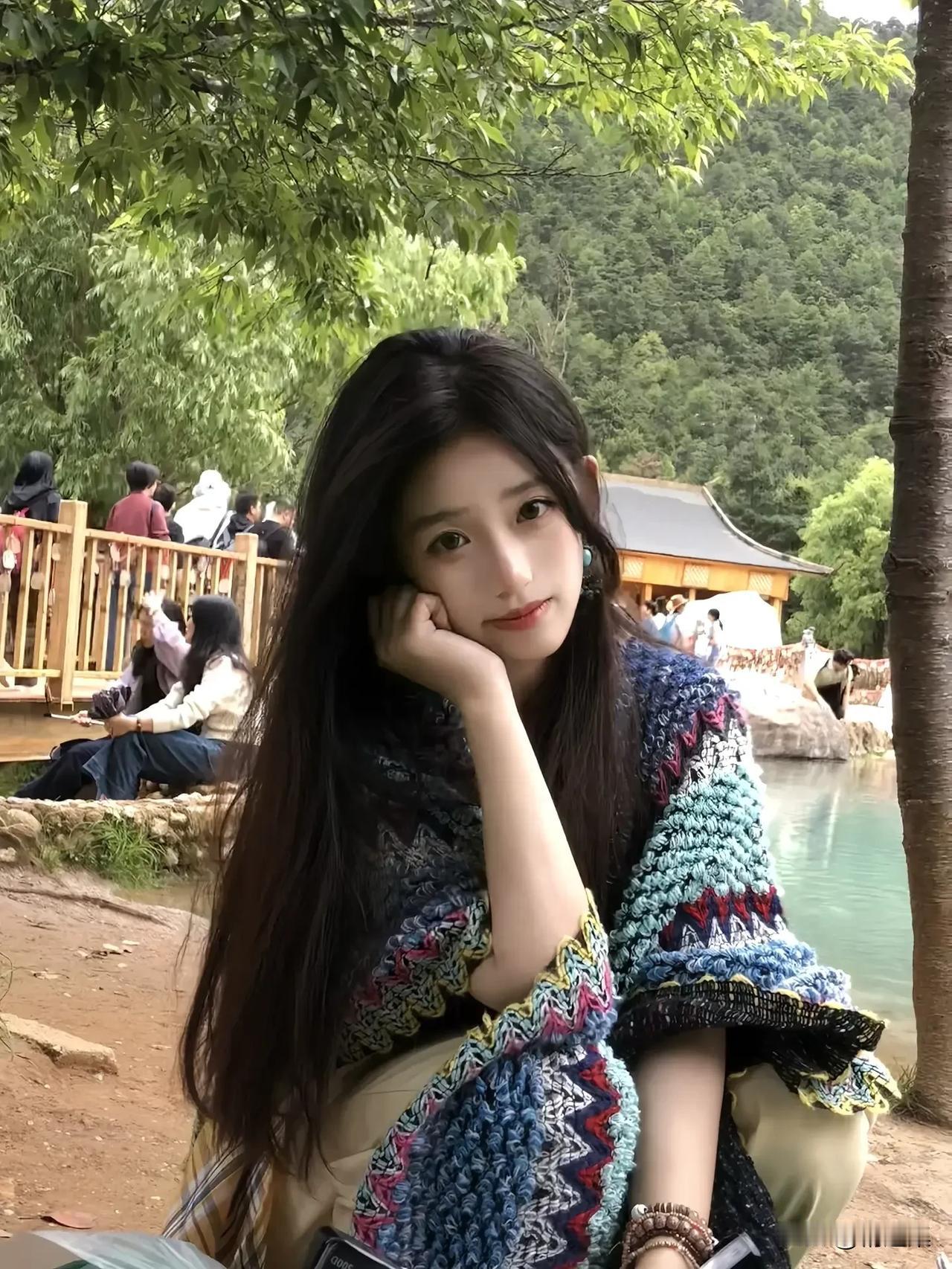 阳光下的甜美笑容,绿意盎然的清新背景,元气满满的一天开始啦!🌞🌿😊