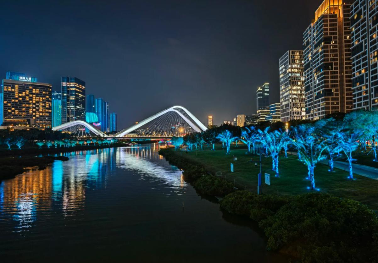 属于深圳前海的灯光秀,难怪前几天发的前海时代这个颜色。。。另外之前我发过沿江高速喷海水的问题,喷泉已经取消了。。。毕竟海水有腐蚀性。