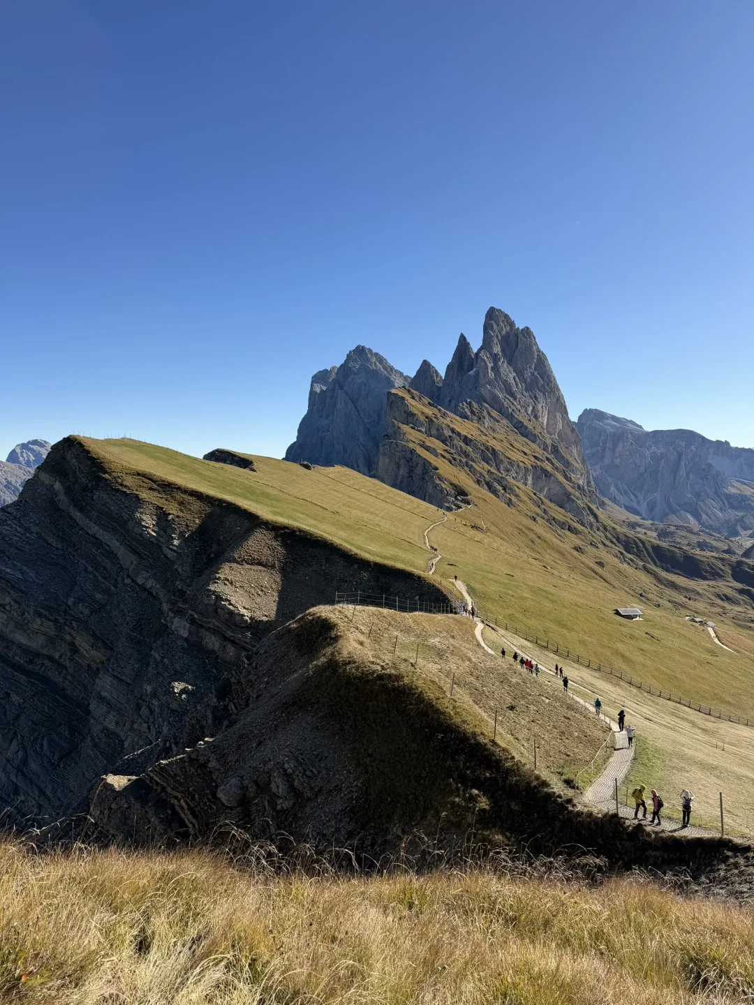 1️⃣上午刀锋山,定位Seceda Cable Car,坐两个缆车抵达,步行15分钟左右抵达观景台,小走一下大概2小时可以逛完,原路返回到小镇去坐另一端缆车
