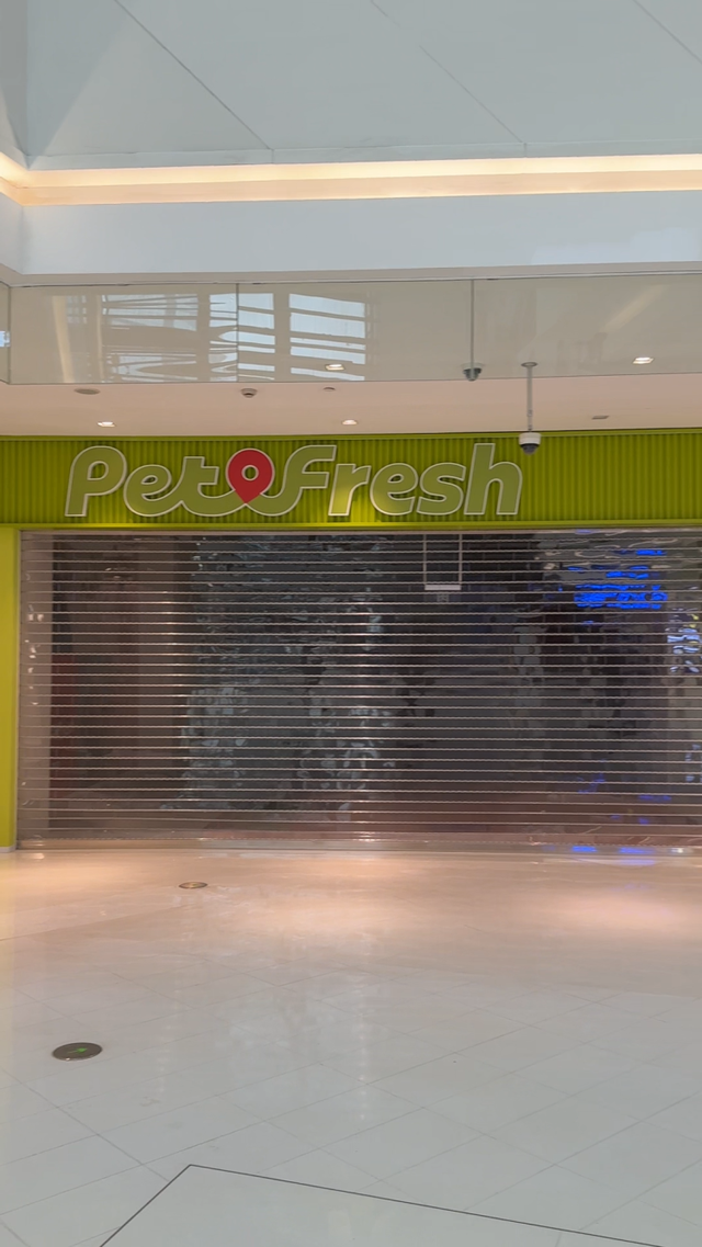 11月11日,记者走访多家门店。下午3时许,记者来到长宁KING88商场一层,“派特鲜生”门店大门紧闭,现场仅留品牌logo及“宠是家人,爱是鲜度”的标语。