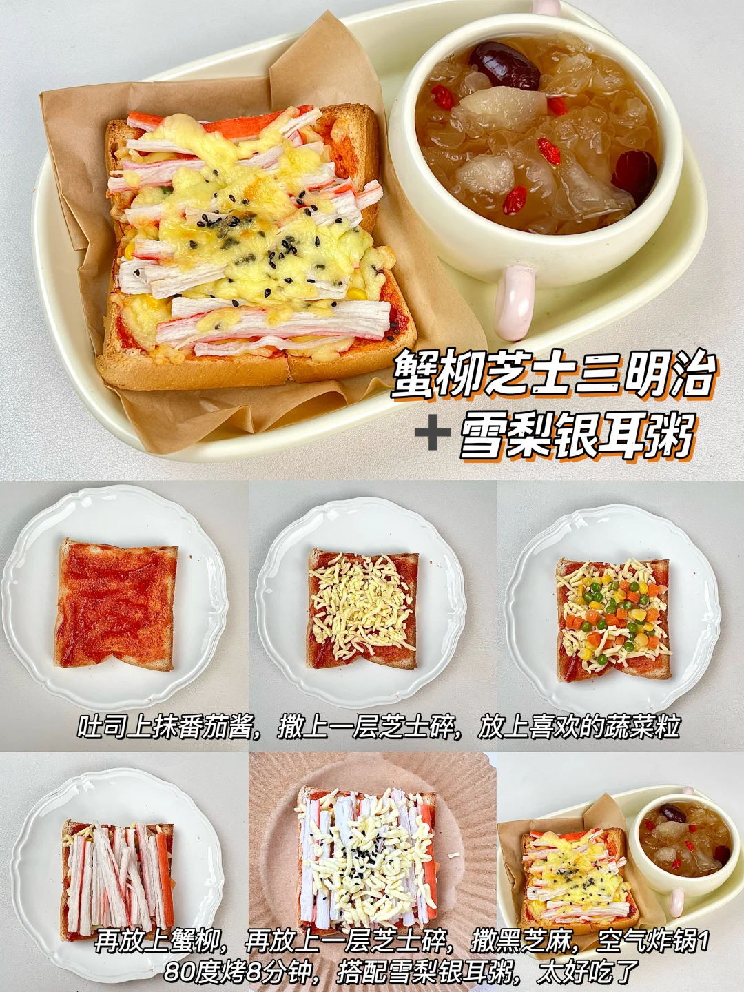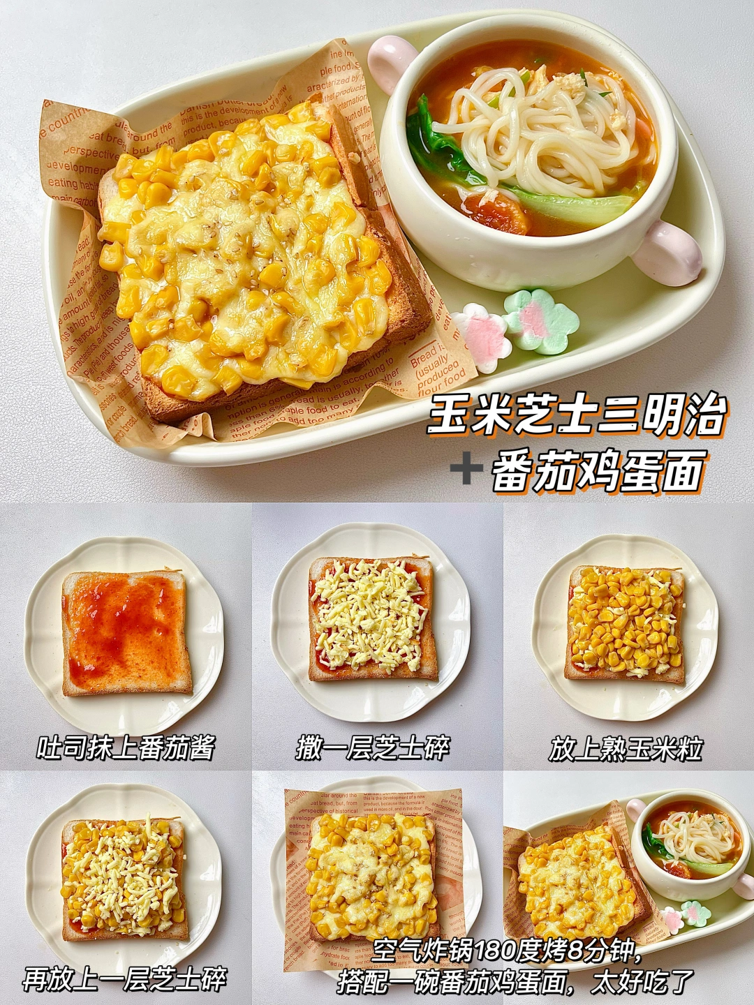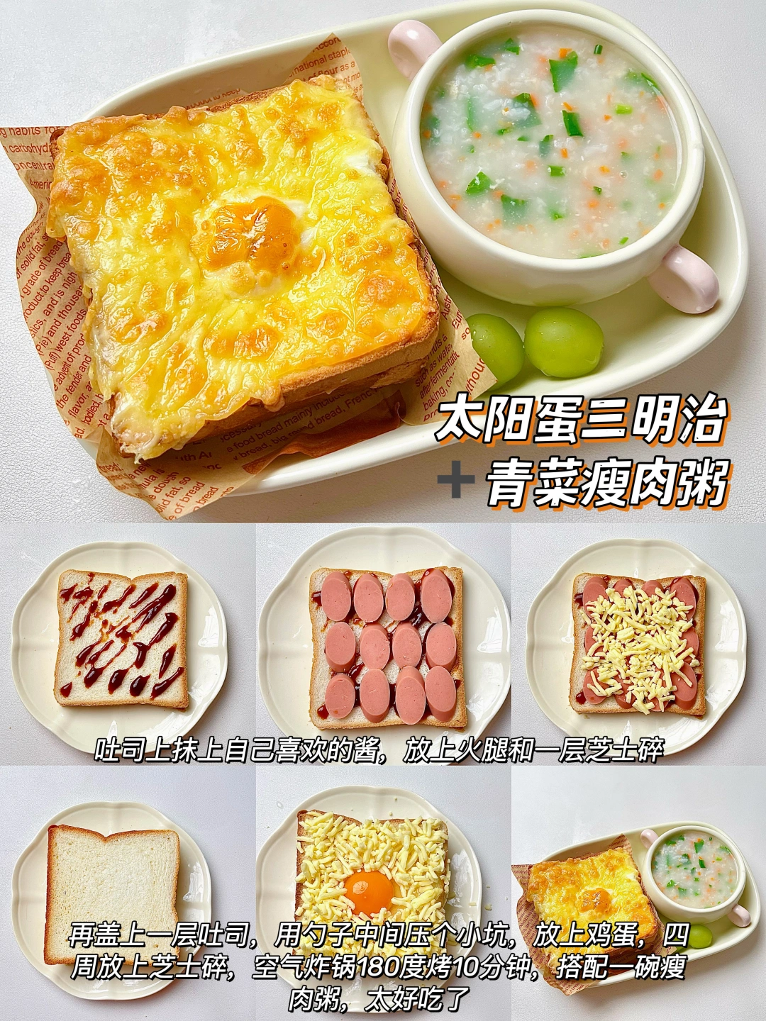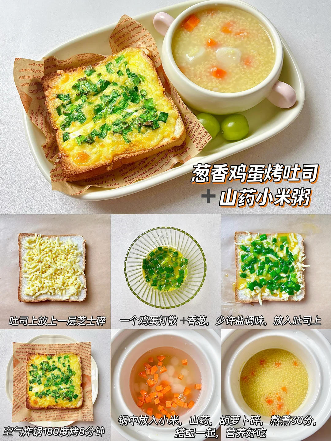 漂亮宝宝的漂亮饭来了🧚🏻♀️ 简单好做,营养好吃,挑食宝宝也能秒光盘💿 新手小白也可以轻松上手哦~ 🥣葱香鸡蛋烤吐司➕山药小米粥 🥣玉米芝士三明治➕番茄鸡蛋面 🥣蟹柳芝士三明治➕雪梨银耳粥 🥣太阳蛋三明治➕青菜瘦肉粥 🥣香葱小煎饺➕时蔬肌肉粥 🥣番茄鸡蛋饼➕苹果小米粥 ✅具体做法参考图文教程哦~