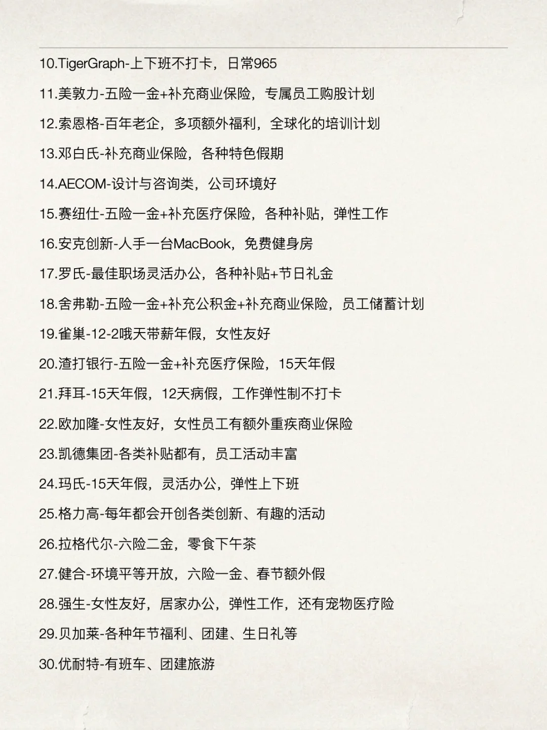外企的吸引力不用多说:955、加班少、年假15天起、补贴齐全、节日福利标准化、管理人性化。相比一味卷绩效的民企,外企的节奏确实更稳定,氛围也更平等。