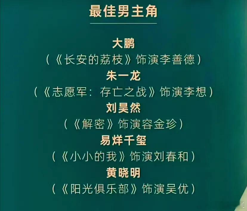 看了下这届金鸡奖最佳男主的提名,感觉影帝只会在朱一龙和易烊千玺中诞生黄晓明都拿了两次,而且最近风评不太好,明显不会拿奖刘昊然呢,底蕴又差了点大鹏,一看就不是学院派评委的菜朱一龙35届的时候拿了一次,说明评委认可他易烊千玺已经提名四次了,给一个也不过分目前这两家已经吵起来了看不管谁得奖,都是一场腥风血雨啊
