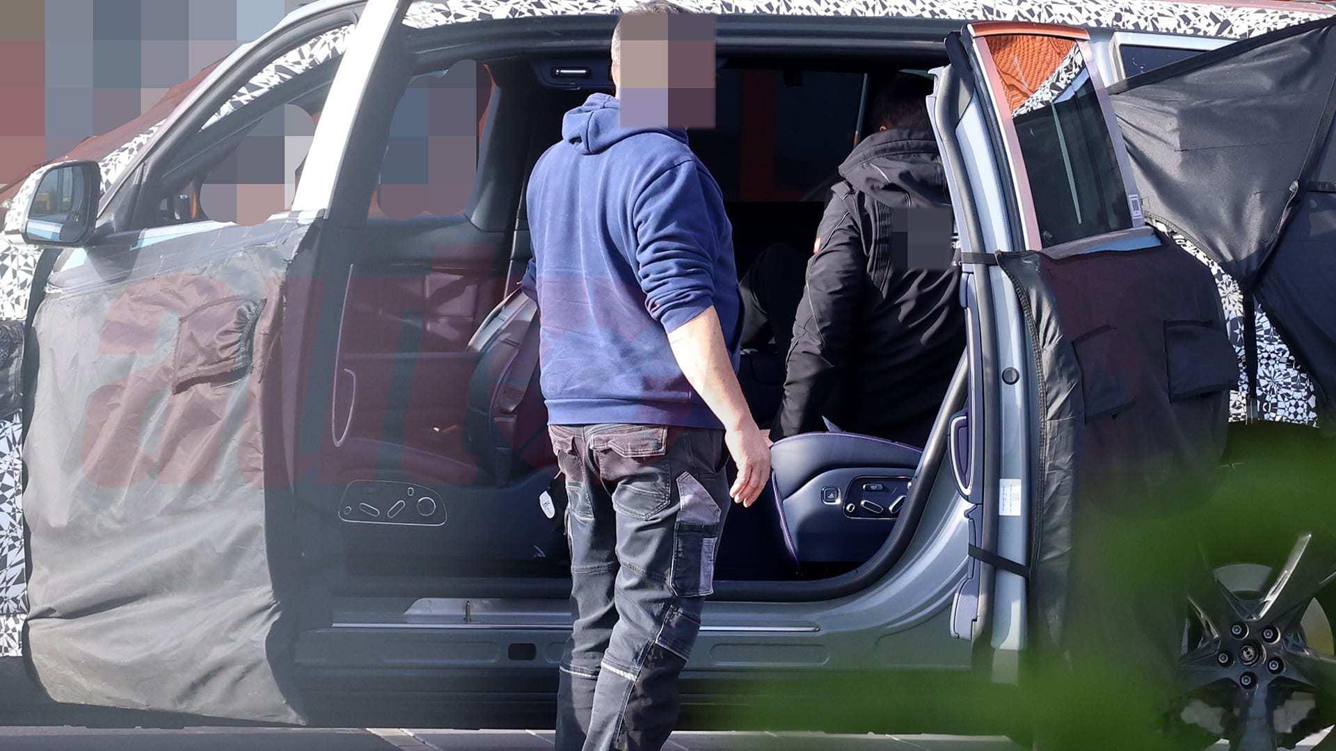 一组捷尼赛思GV90的伪装照片(图源:Autoblog),可以看到无B柱+电动对开式车门的设计现在还保留着,但据说将来它也会提供常规车门的版本,大概是低配用?再有就是后排座椅上可以看到靠背调节的开关,不过对GV90这个级别的大型SUV而言,这好像不算特别亮眼的配置。