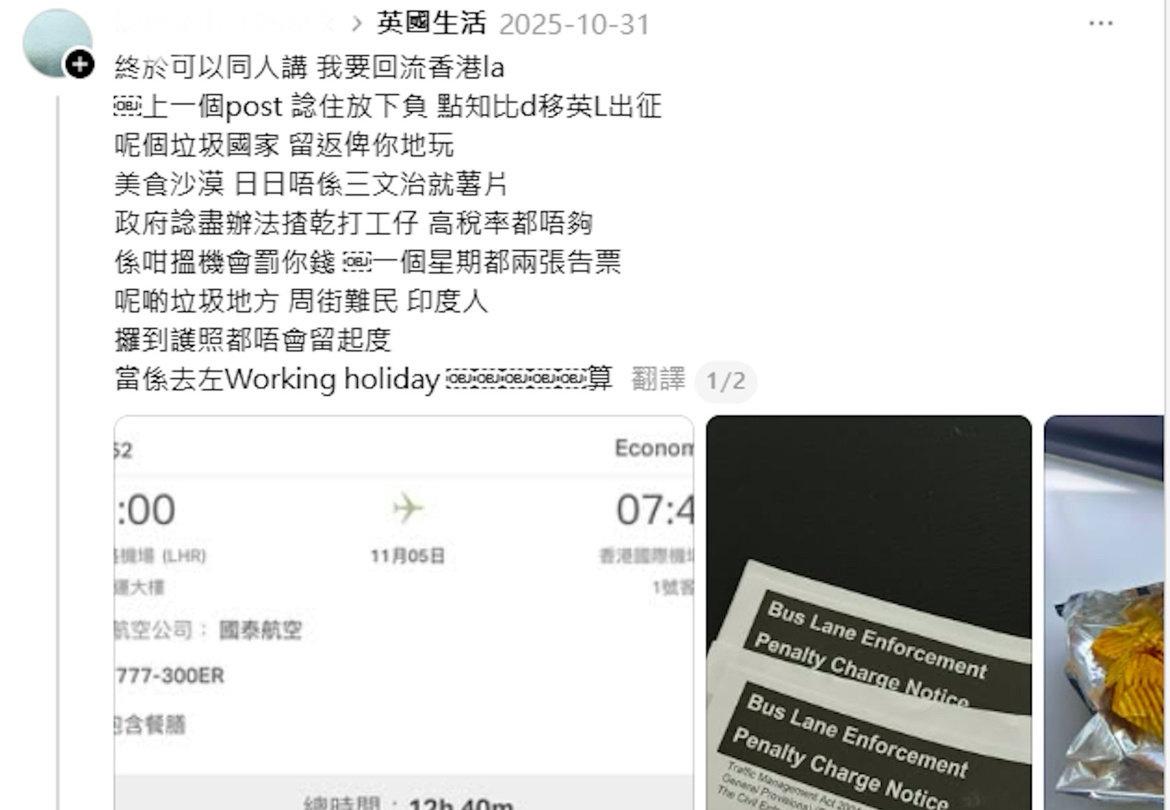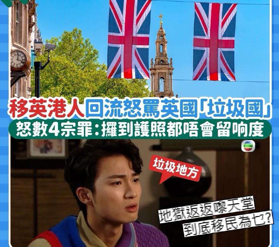 移民英国的港人发文宣布自己已回流香港。更踩英国是个垃圾国家,称英国是第三世界国家,赞香港是天堂。 英国是美食荒漠,天天吃薯片三文治,周边又都是难民和印度人,高税率让生活水平直线下降。 其实吧,主要还是他自己没能力提升自己又不懂得做饭,所以也走不出舒适区,只能选择回港。