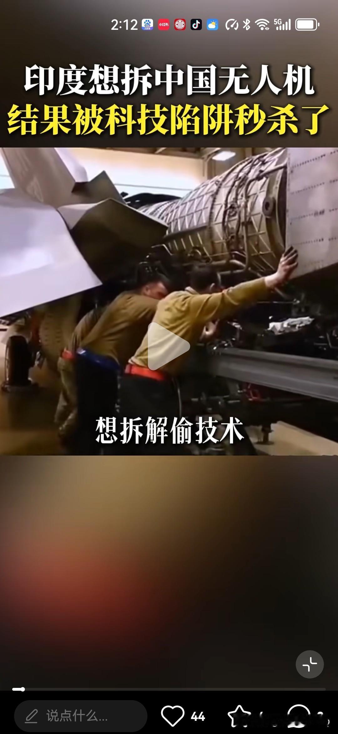 举报:印度居然拆解中国无人机偷技术! 最近印度从第三国偷偷购买中国无人机拆解企图偷技术,谁知道中国无人机居然上锁,当印度技术人员触动纳米感应器时,无人机会自动爆炸或者自燃,而土耳其更加爆料,中国出口无人机安装导航装置,飞行中接近边境会自动返回,这是中国预防卖出去的无人机用来攻击自己,强行指令进入中国会空中爆炸,更要命的是无人机内部生态系统会自己老化,然后烧毁自己,想看究竟是不可能的!知识产权保护由自己保护自己!无人机设置范围使用,这是很牛的技术!中国无人机引领全球!