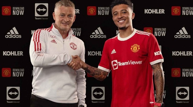 桑乔2021年夏窗以8500万欧固定转会费的费用从多特加盟曼联,而4个月后的11月21日,曼联宣布主帅索尔斯克亚下课。