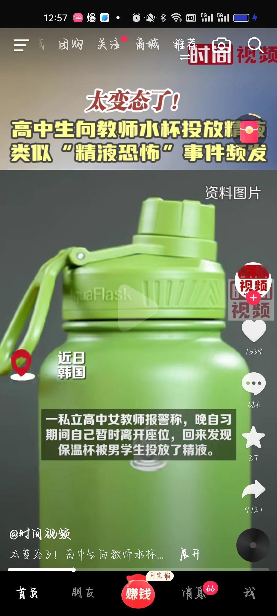 太变态了。 一私立高中女教师报警称,晚自习 期间自己暂时离开座位,回来发现 保温杯被男学生投放了精液。