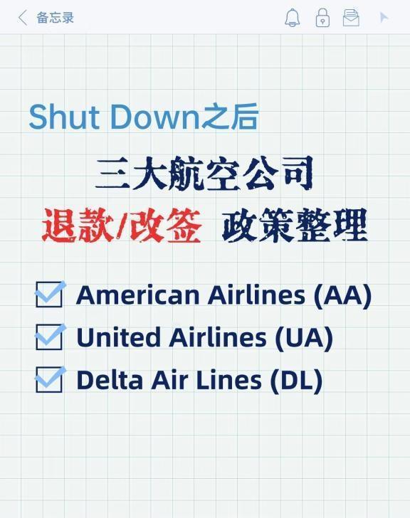 近期🇺🇸出行必看,带你避开取消航线 美国政府自 2025年10月1日开始停摆[石化],导致部分联邦机构FAA人员处于无薪待命状态。 因此FAA要求各航空公司在美国 40 个交通繁忙机场减少大约 10% 的航班流量 这次 shutdown 影响不算小[伤心],但航司普遍都放宽了政策。[惊喜] 如果你近期有出行计划,记得提前确认航班,别让假期计划被临时打乱。 欢迎在评论区交流你的出行状态[得意] AmericanAirline United Delta 美联航 航班延误 美国飞机 飞机改签 退票 shutdown