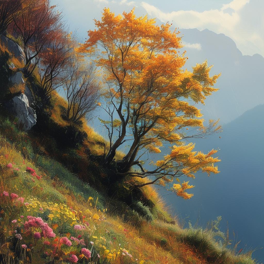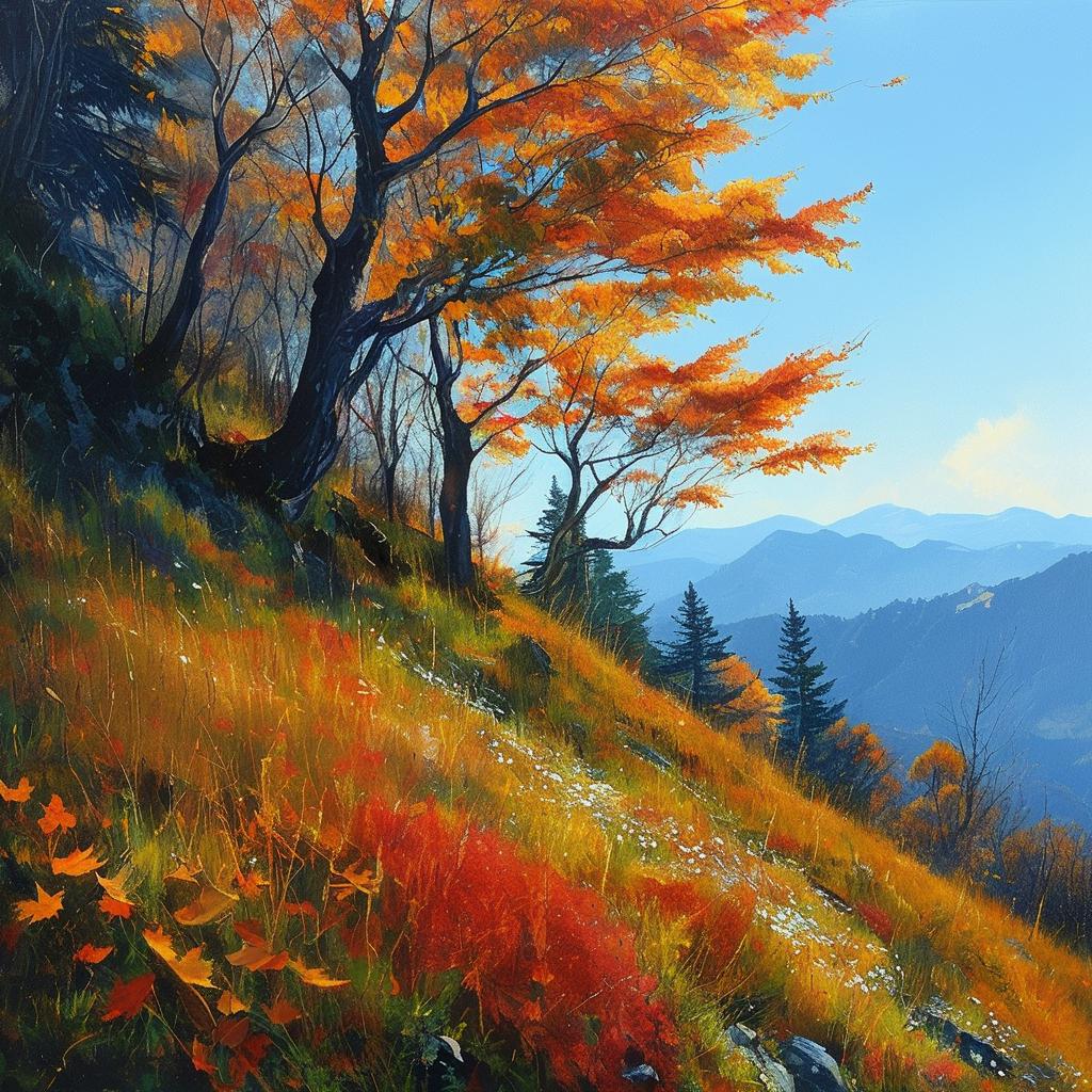 秋风执笔,霜色为墨,林间便展开一幅磅礴的油画。落叶知秋凉,却更知秋色浓——那银杏是倾倒的鎏金瀑布,枫林是燃尽的晚霞,乌桕叶则在绯红与赭黄间摇曳。凉意仿佛是最高明的画师,一笔笔催开了木槿最后的紫红,让桂子将细碎的金黄藏进叶间,暗香浮动,与清冷的空气缠绕,织成一张无形的、甜软的网。 当第一片梧桐叶打着旋儿吻向大地,凉意便有了形状。落叶知秋凉,飘零亦成景。你看那无患子的明黄与栾树的绯红果实,像一串串小灯笼点亮了寂寥的枝头。树下的菊花,却正迎着这份凉意,舒卷开重重花瓣,白的清冷,黄的热烈,紫的深邃。风过时,落叶与花香共舞,这是一种告别,更是一场盛大的、属于秋的加冕。 落叶知秋凉,层林尽染霜。 枫似火,松犹翠,丹青难画此间妆。 凉风拂过,落叶知秋意,花开见风骨。那残荷立于水央,褪去嫣红,留一身铮铮铁骨;篱边的菊,却正当时,于萧瑟中绽出满目繁华。 感知落叶知秋凉,更爱疏林映晚光。 银杏洒金,乌桕燃火,几簇忍冬的红果,是秋日写给冬日的朱砂诗行。 在这些描绘中,“落叶知秋凉”不再是伤感的信号,而是转换为了欣赏秋日绚烂的起点与背景。希望这些文字能为您勾勒出心目中的秋日美景。