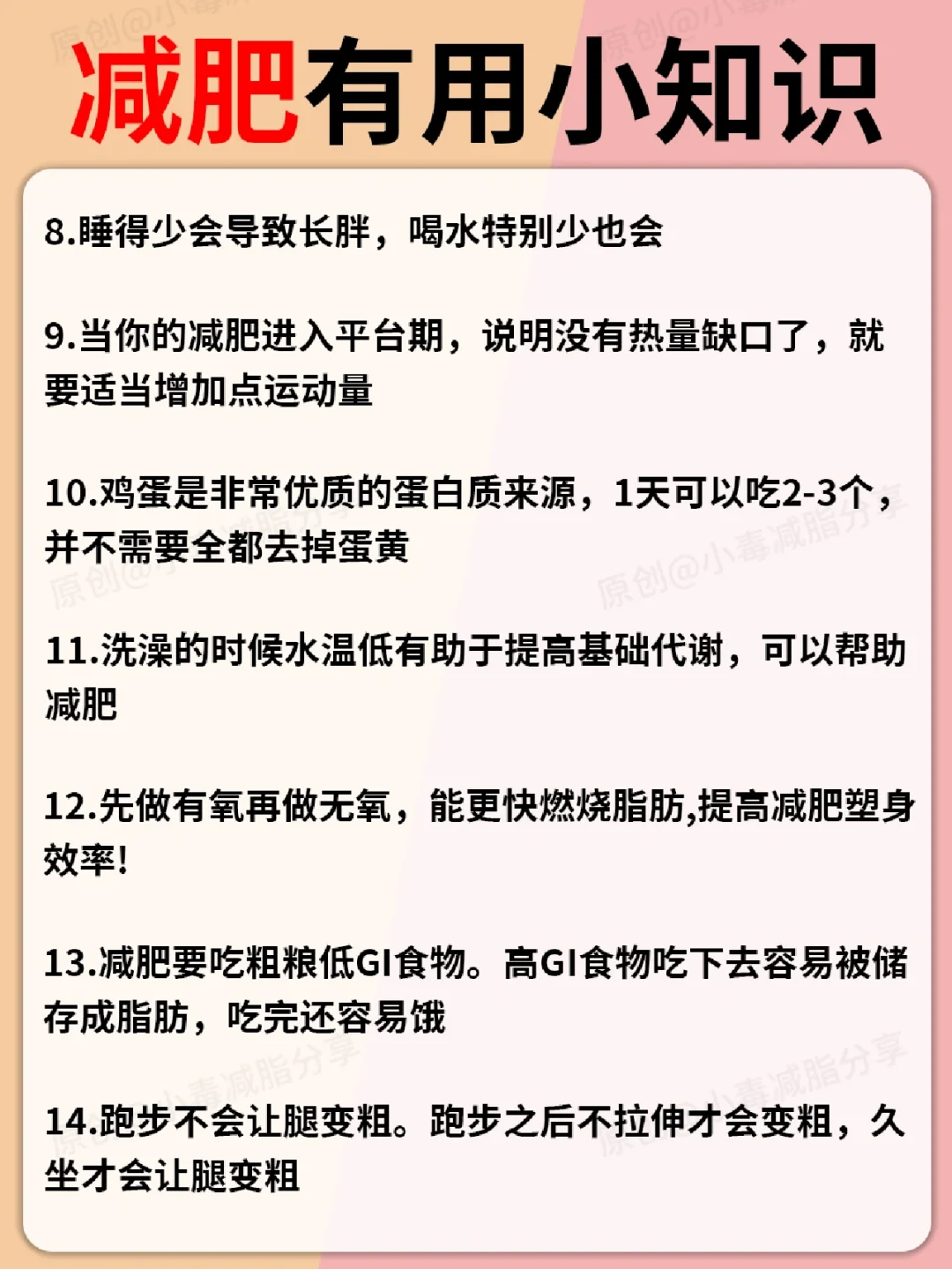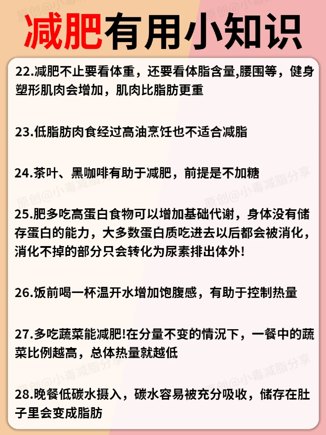 减肥的宝子们,这些减肥小知识赶紧码住[派对R][派对R][派对R] 每一条都非常有用[赞R][赞R][赞R] 不向脂肪低头,夏天来临之前打败脂肪[派对R][派对R][派对R]
