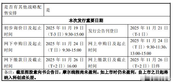 【摩尔线程:本次发行初步询价日为2025年11月19日 申购日为11月24日】摩尔线程披露科创板上市招股意向书,发行人股票简称为“摩尔线程”,股票代码为“688795”,该代码同时适用于本次发行的初步询价及网下申购。首次公开发行股票初步询价日为2025年11月19日,申购日为11月24日。