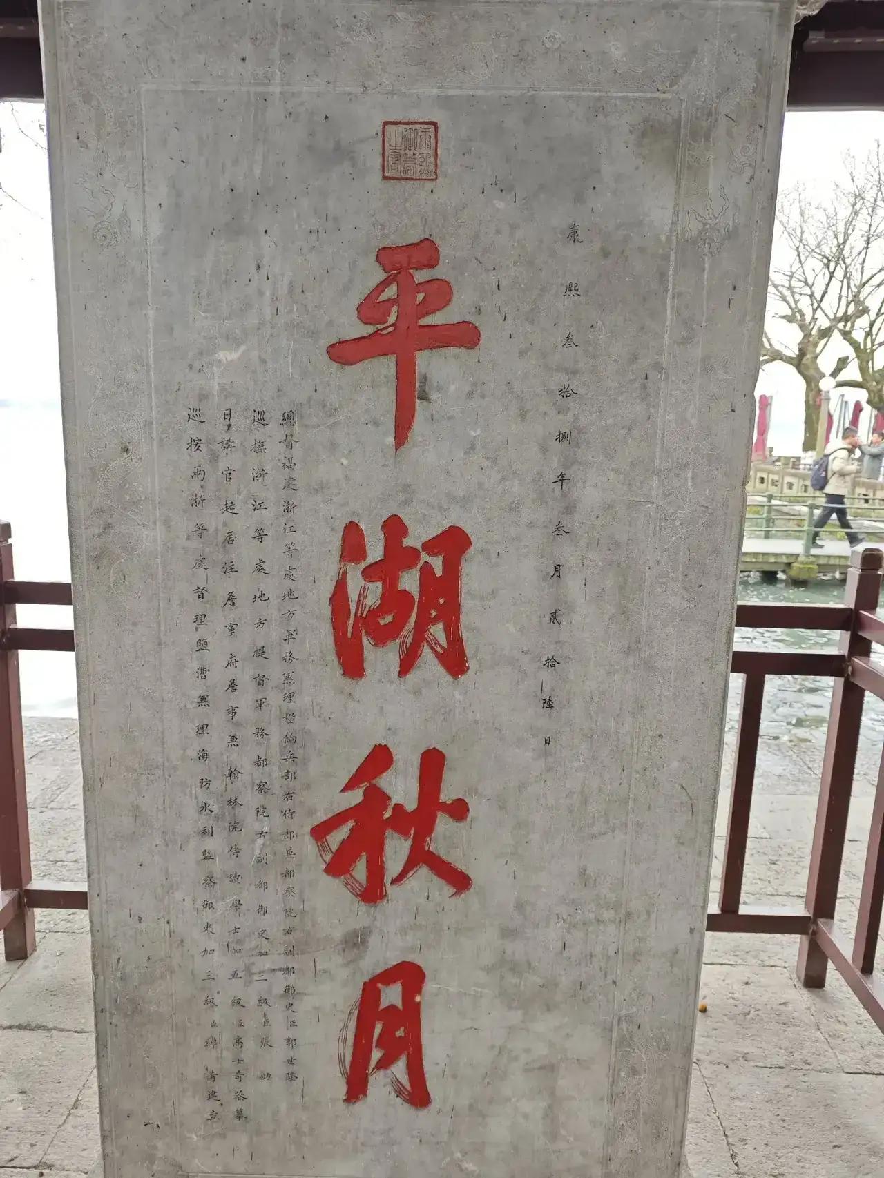 杭州西湖十景之一“平湖秋月”定位于白堤最西端,在孤山的南麓。“平湖秋月”碑亭,是一座攒尖顶平瓦四角方亭,亭中立康熙御书碑“平湖秋月”。 根据史料记载康熙三十八年期间,康熙皇帝巡视西湖,亲自御书“平湖秋月”匾额,从此,杭州西湖“平湖秋月”景点名称被固定下来再也不曾改变。“平湖秋月”形容秋高气爽的天气里西湖的湖面平静的如镜子一般,皓洁的秋月挂在天空,月光与湖水交相辉映,有着“一色湖光万顷秋”的感觉,故被题名“平湖秋月”。 如果有朋友们来杭州西湖一定要穿过白堤亲自体验一下什么是“平湖秋月”。