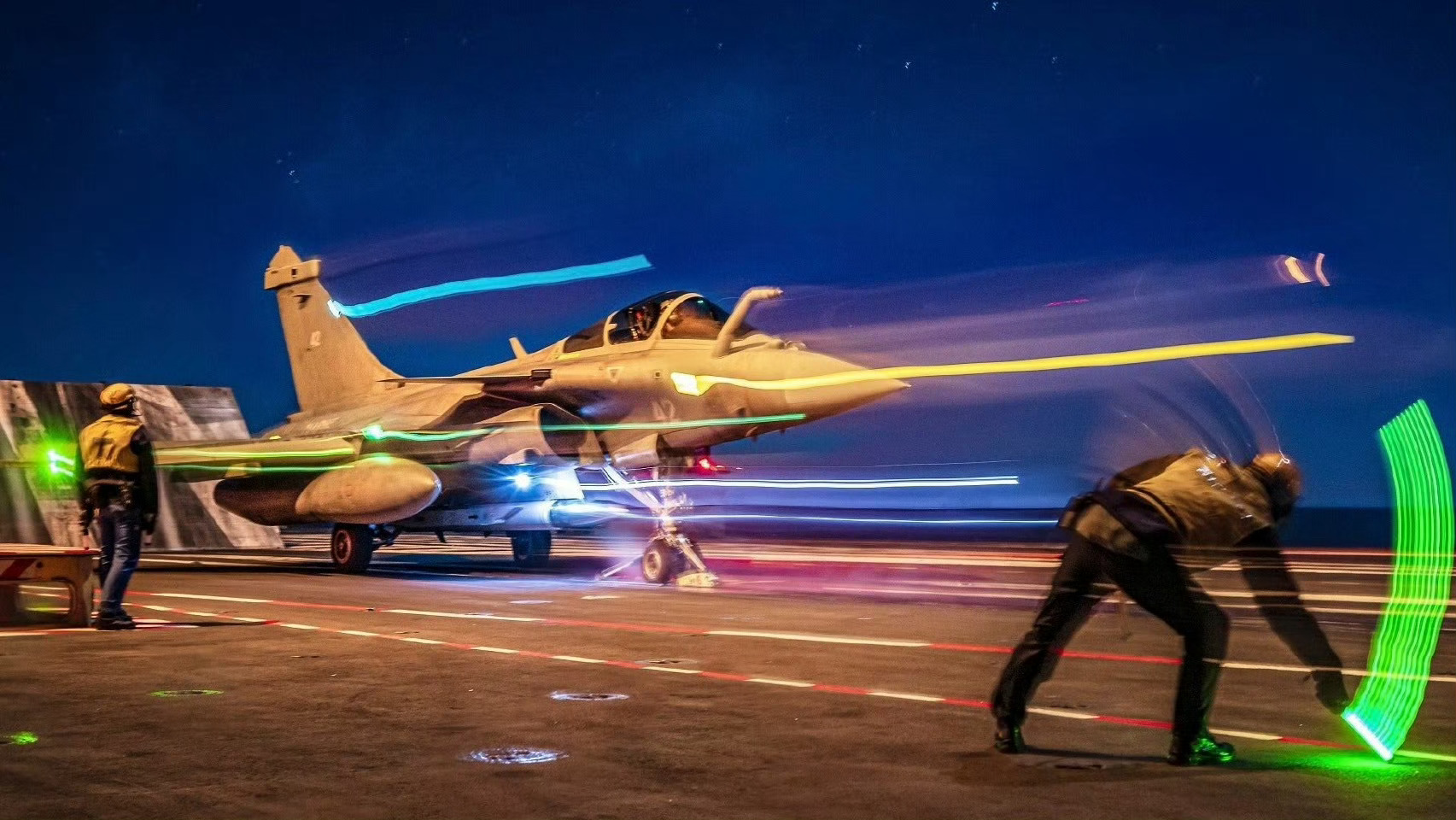 从法国海军“戴高乐”航母起飞的舰载“阵风M”战斗机首次完成“改进型中程空对地超音