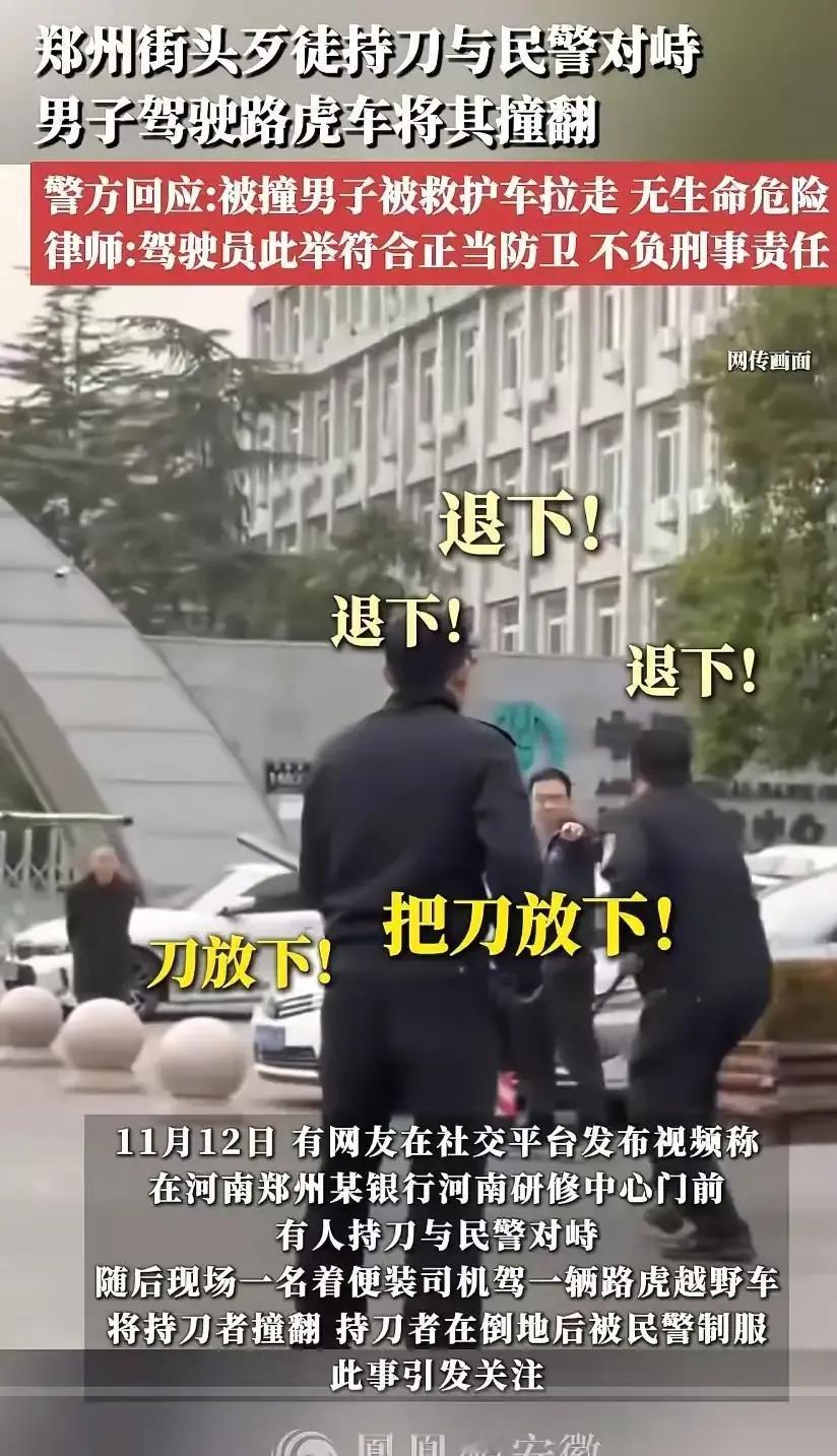 “这是见义勇为还是故意伤害?”郑州街头,歹徒持刀与民警对峙,男子驾驶路虎车将歹徒撞倒,帮助民警将歹徒制服!可是总有些“事后诸葛亮”跳出来质疑就算人家是歹徒你也不能开车和直接撞啊?万一撞死了怎么办? 这句话一出口,似乎把所有人都拉回了那个瞬间的现场:刀光剑影、惊叫声、呼救声,还有那辆疾驰而来的路虎。有人说,这是英雄的勇敢,是正义的化身;有人则质疑,这是鲁莽,是危险的“开车杀人”。但真的是这样吗?在这个瞬息万变的社会,每一个选择都像是在刀尖上跳舞。 你是否曾经在危急时刻,感受到那种“我必须行动”的冲动?那种“我不能眼睁睁看着坏人逍遥法外”的责任感?在郑州的那个瞬间,男子驾驶路虎冲出,似乎只是简单的“救人”行为,但背后隐藏的,却是我们每个人都可能面临的道德抉择:勇敢还是鲁莽?责任还是风险?在这个充满复杂人性的社会,所谓的“正义”从来不是黑白分明的。 有人说,法律有规矩,不能随意开车撞人,否则就变成了“肇事者”。但难道面对生命危险,我们还能用“规矩”来衡量吗?在那一刻,男子的心里,或许只有一个念头:救人!保护民警!谁愿意看到一个生命在自己眼前逝去?谁又能忍心让歹徒继续作恶?这是一场没有硝烟的战斗,每一个行动都充满了风险与责任。 我们常说,英雄不问出处,但在现实中,英雄的定义却变得模糊。有人觉得他是在“越界”,有人则看到了那份无私的勇气。这不禁让人深思:在这个社会,什么才是真正的“正义”?是守规矩,还是在危急时刻敢于打破常规?答案或许没有标准,但有一点是肯定的——每一个在危难时刻挺身而出的人,都值得我们尊敬。 或许有人会说:“如果他撞死了人怎么办?”但也有人会问:“如果他不出手,歹徒伤人,谁来承担责任?”这正是我们这个时代的矛盾点:责任与勇气,规矩与人性,法律与情感的博弈。我们不能简单地用“对”或“错”去评判那一刻的选择,因为那是一个充满人性光辉的瞬间。 或许,我们更应该反思:在这个社会,是否应该多一些理解和包容?多一些对“勇敢”背后复杂情感的理解?毕竟,谁都希望在危难时刻有人敢于站出来,用行动点亮希望的火焰。那一刻的男子,也许就是那个在黑暗中点燃希望的人。 这件事,远远不止是一场简单的“碰撞”。它折射出的是我们每个人心中那份对正义的渴望,对生命的敬畏,以及对责任的担当。在这个纷繁复杂的世界,或许我们都需要一点勇气——去相信,真正的勇敢,是在危难时刻,敢于用行动去守护那份属于我们每个人的善良与正义。持刀事件 河南歹徒