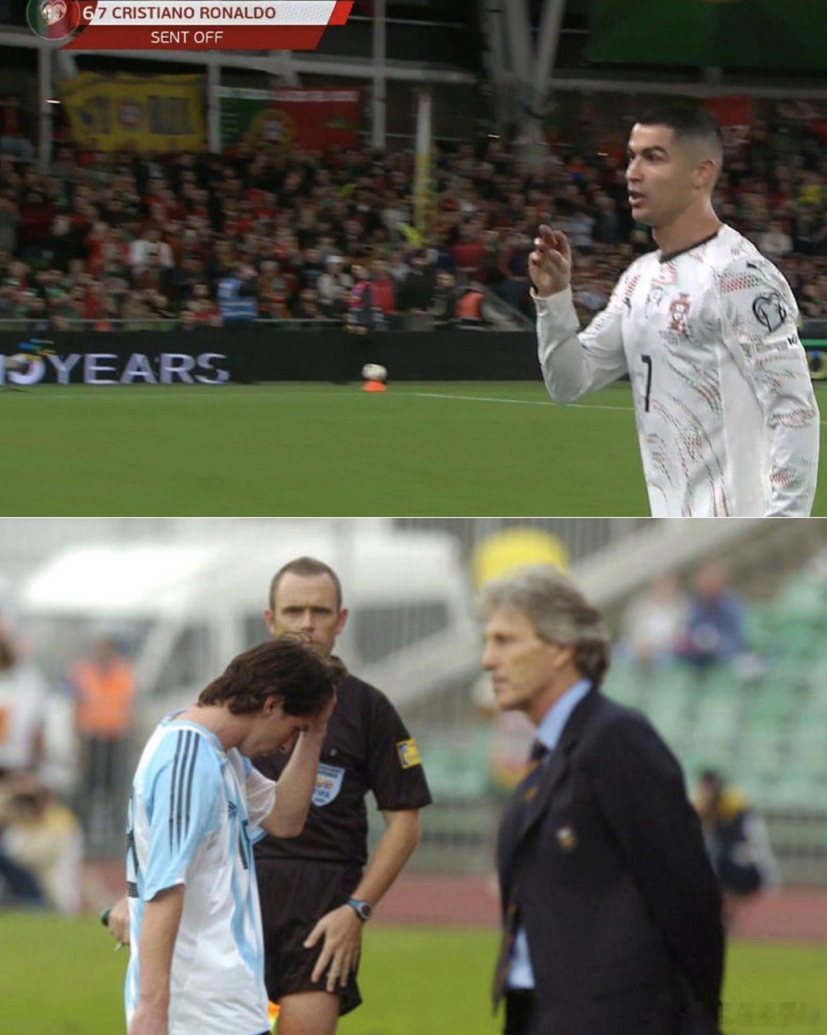 克里斯蒂亚诺·罗纳尔多花了226场比赛才获得葡萄牙的第一张红牌梅西在阿根廷的第一场比赛中得到了它🇦🇷 🟥