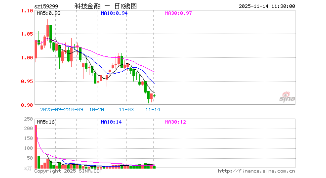 11月14日,截止午间收盘,金融科技ETF易方达(159299)跌0.54%,报0.918元,成交额708.30万元。金融科技ETF易方达(159299)重仓股方面,同花顺截止午盘跌0.96%,东方财富跌1.23%,恒生电子跌1.39%,指南针跌0.01%,润和软件涨0.93%,东华软件涨2.00%,银之杰跌1.11%,新大陆涨0.04%,四方精创跌1.48%,广电运通跌0.32%。