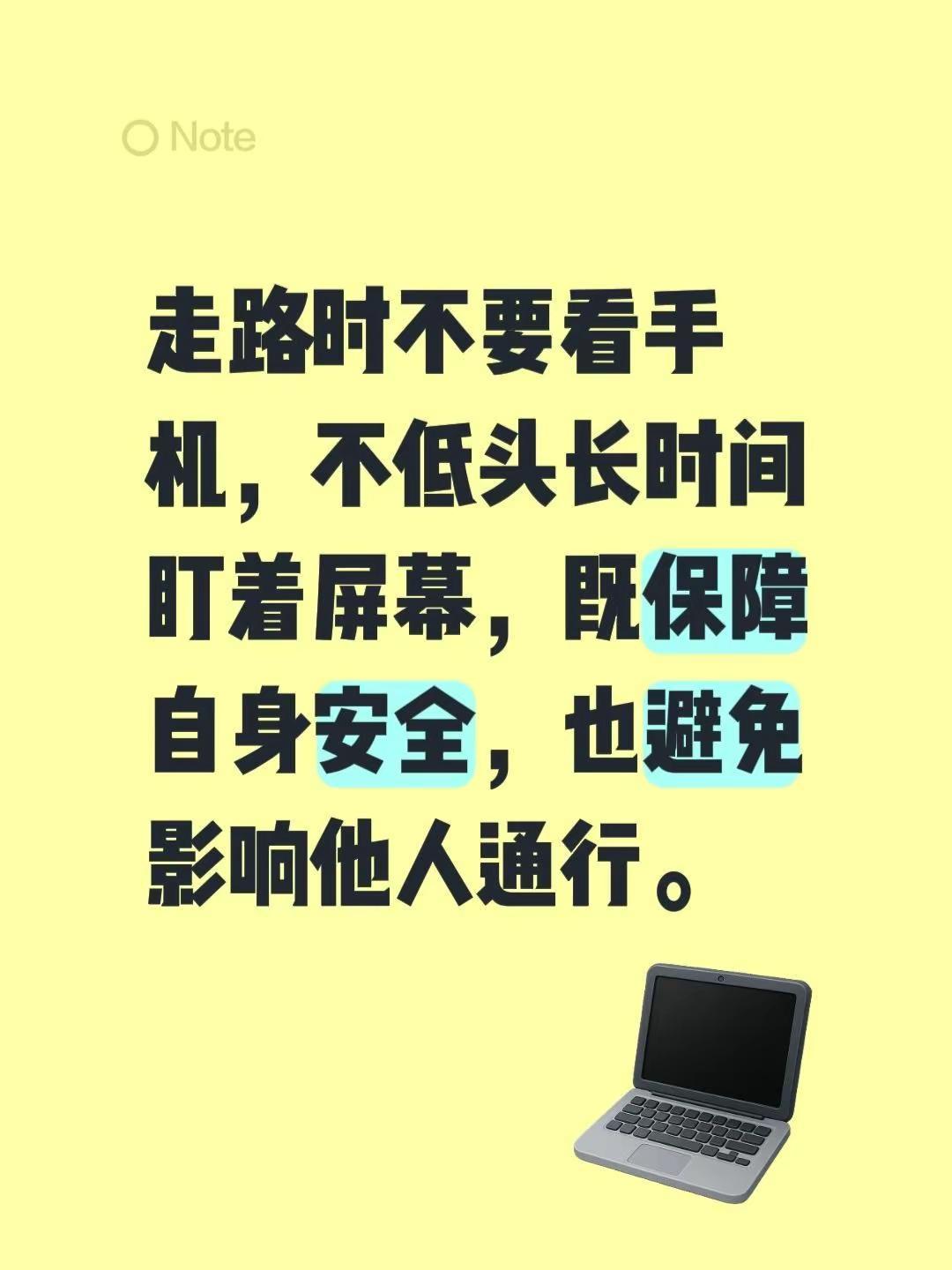 走路时不要看手机,不低头长时间盯着屏幕,既保障自身安全,也避免影响他人通行。