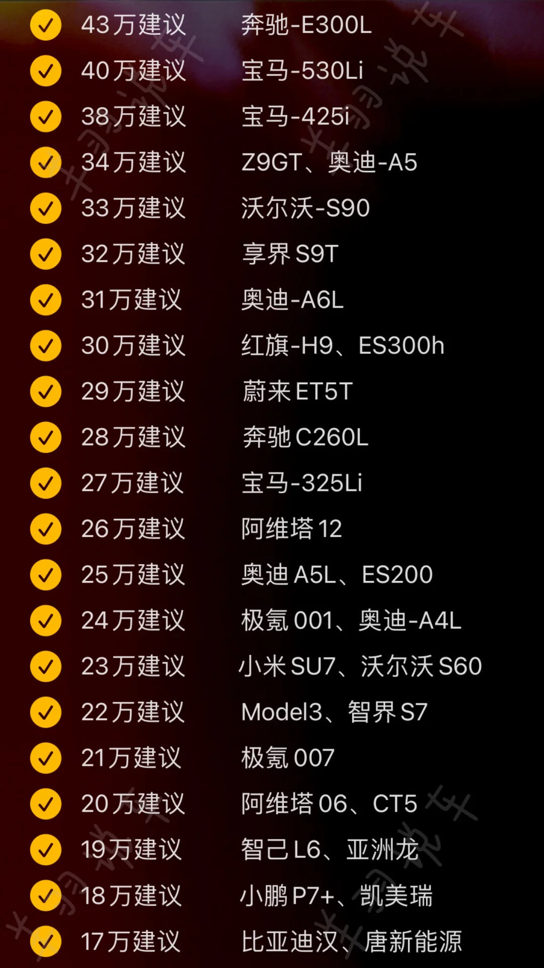 🚗其实买车的逻辑很简单,不要把问题复杂化。看两个东西,一是看预算,二是看销量。销量好的车至少不会太差,在预算内,看销量选3-5款车,去试驾,去感受车的舒适性、驾控感、静谧性等。然后做出最终的结论。