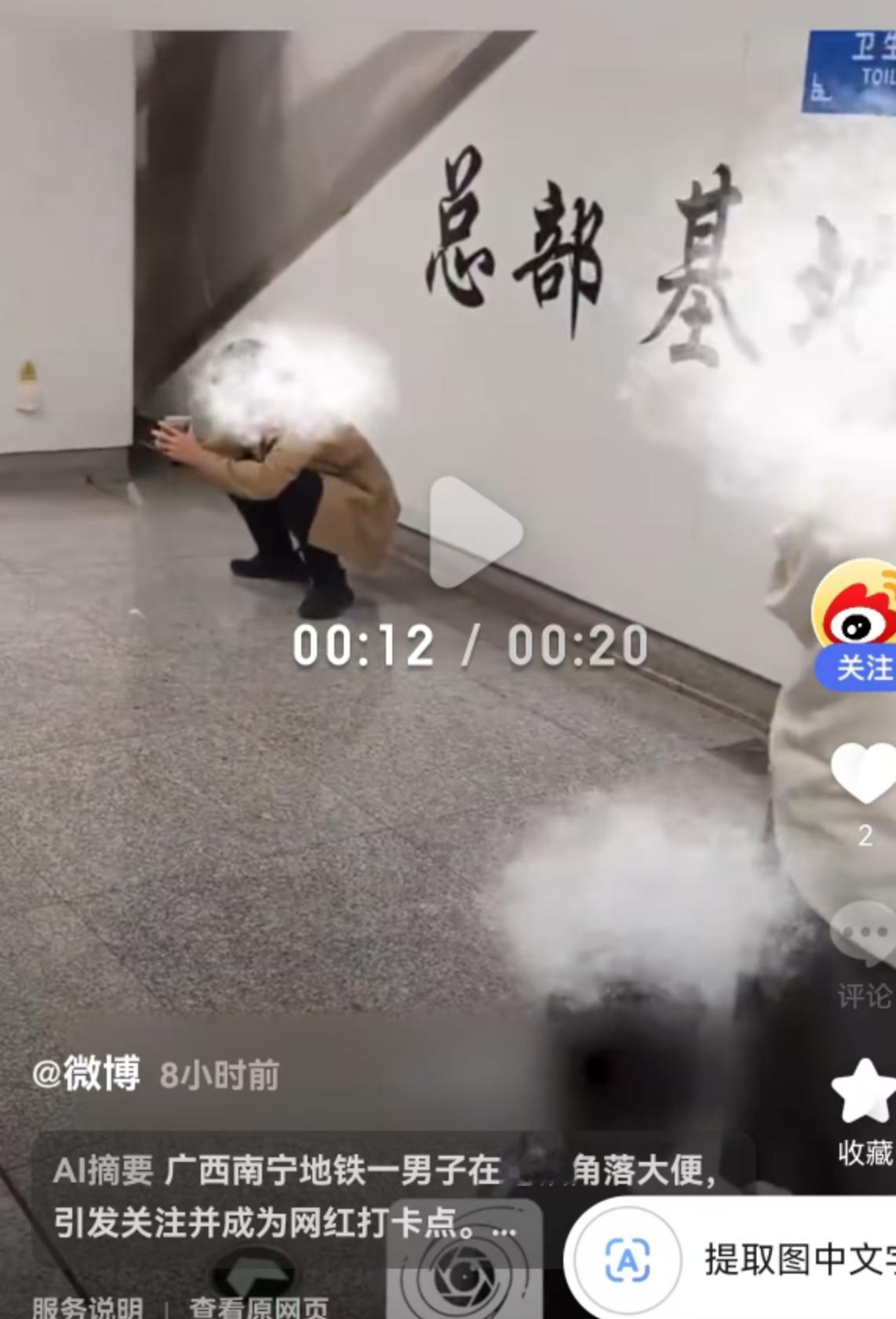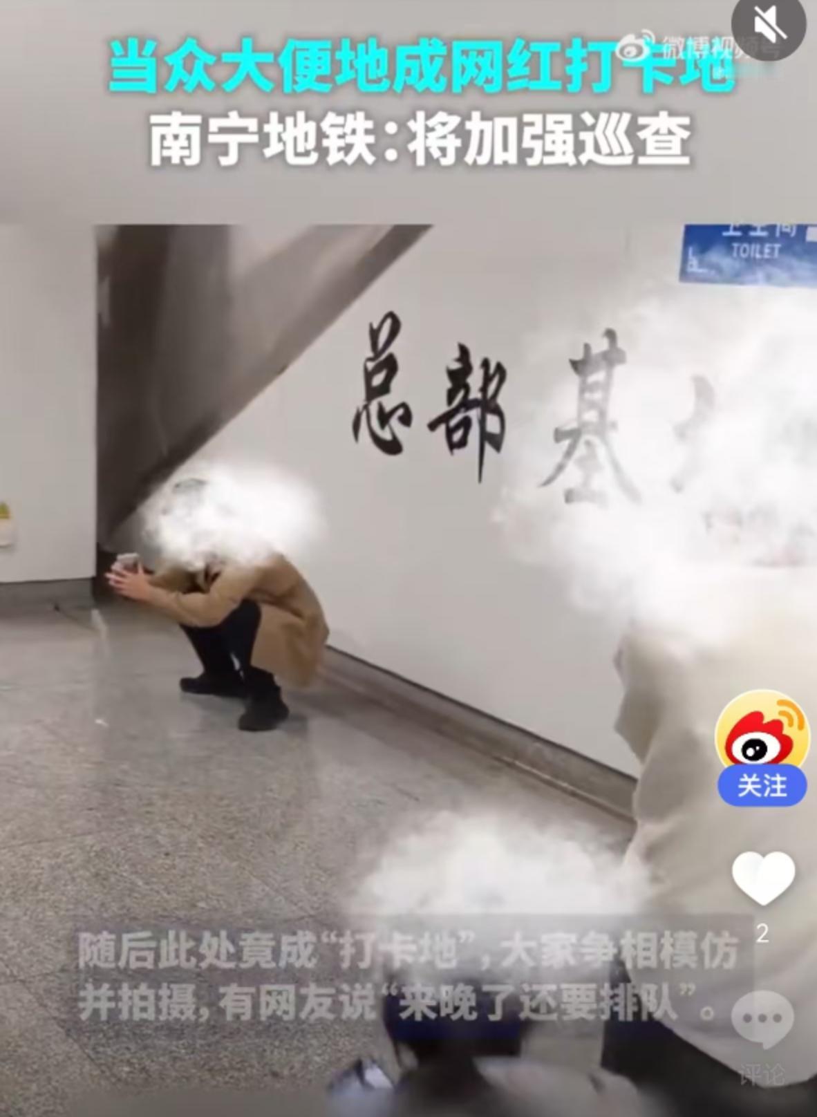 一出荒诞剧,在广西南宁的地铁站里,正以一种超乎想象的方式上演。剧本的开端,令人皱眉;而后续的发展,则让人哑口无言。 时间拨回到2025年11月11日上午,一个普通的工作日。在南宁轨道交通3号线的总部基地站,人来人往,一切都如常运转。这时,一名手拎茶杯的男子,在站台等车期间,做出了一个惊世骇俗的举动。他没有走向不远处的卫生间,而是径直走向站台的一个角落,在众目睽睽之下,就地大便,事态后从容离开。 整个过程,被监控摄像头记录下来,并迅速在网络上发酵。视频的传播,像一颗投入平静湖面的石子,激起了层层涟漪。公众的第一反应是震惊与谴责。在现代化的公共交通枢纽,发生如此不文明的行为,无疑是对公共秩序和城市文明的公然挑战。 南宁地铁方面很快做出回应。11月12日,地铁服务热线客服人员证实了视频内容的真实性。他们表示,事发后工作人员已立即对现场进行了清理和消杀。一个极具讽刺意味的细节被披露出来:事发位置,距离卫生间的标识不足两米。站台厕所当时完全可以正常使用,地铁方面也建议有需求的乘客可以随时求助工作人员。 与此同时,南宁地铁公安部门于11月12日表示将对此事发布通报,但并未透露更多细节。到了11月13日,南宁地铁再次回应,称已启动调查程序,正在排查核实视频泄露的原因。一切似乎都在按照正常的公共事件处理流程在走。 然而,就在舆论的焦点还停留在对当事人行为的谴责和对地铁管理责任的追问时,事件的走向,突然拐进了一个令人瞠目结舌的岔路口。 那个本该被遗忘、被清洁的角落,竟然成了网红打卡点。 “来晚了打卡还要排队!”一位网友在发布的视频中这样配文。视频画面里,一名男子蹲下身,模仿着最初当事人的姿态,而旁边两名女子则举着手机,有说有笑地拍照。三人的神情轻松愉快,仿佛他们正在参与的,是一场新奇的街头行为艺术,而不是在一个曾经发生过不文明行为的地方进行一场低俗的模仿。 这一幕,让整个事件的性质发生了根本性的改变。如果说,最初男子的行为是个体素质的缺失,那么后来的模仿打卡,则是一种群体性的审丑狂欢。它不再是对不文明行为的批判,反而将其娱乐化、消费化,甚至赋予了它一种“网红”的光环。 这背后,究竟是一种怎样的社会心态在作祟? 在流量为王的时代,任何能吸引眼球的事件,都有可能被解构、被利用,最终变成博取关注的工具。一些人为了在社交媒体上获得片刻的“出位”,可以毫无底线地消费任何公共事件。他们追求的不是意义,而是关注度;不是价值,而是点击量。这种“万物皆可打卡”的逻辑,消解了事件本身的严肃性,将公序良俗踩在脚下。 南宁地铁方面对此也深感无奈,并公开致歉。一个城市的交通枢纽,本应是文明的窗口,如今却因为一场闹剧而蒙羞。地铁方的道歉,既是对管理疏漏的反思,更是对这种荒诞现象的无声抗议。 我们不妨深入思考一下,从最初的“当众大便”,到后来的“排队打卡”,这中间到底发生了什么? 第一个事件,暴露的是个体文明素养的短板,以及公共设施引导的不足。在距离卫生间不足两米的地方发生这样的事,无论如何都说不过去。它提醒城市管理者,文明的养成,既需要设施的完善,也需要持续的引导和有效的惩戒。 而第二个事件,则暴露了一个更深层次的问题:在社交媒体的催化下,我们的价值判断是否正在发生扭曲?当无底线的行为成为流量的密码,当低俗的模仿被当作有趣的消遣,我们失去的,不仅仅是对公共空间的敬畏,更是对是非对错的基本判断。 那个在南宁地铁3号线总部基地站发生的闹剧,像一面多棱镜,照出了我们社会的种种侧面。它有令人不齿的个体失德,有令人无奈的管理漏洞,更有令人深思的群体狂欢。 对于普通人而言,这件事或许只是一个茶余饭后的谈资,一个荒诞的笑料。但笑过之后,我们是否应该有所警醒?当我们举起手机,准备拍摄下一个“网红打卡点”时,我们是否想过,自己的行为,是在为文明添砖加瓦,还是在为荒诞推波助澜? 南宁地铁的那个角落,终将被新的日常所覆盖。但这场由它引发的关于文明与底线的讨论,不应该就此停止。它提醒我们每一个人,在享受网络带来的便利与乐趣时,永远不要忘记,头顶上还有一片叫做“公序良俗”的天空。守住这条底线,才能避免让我们的公共空间,沦为下一个“打卡”的闹剧舞台。 以上内容仅供参考和借鉴