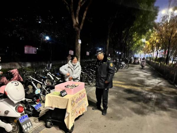 为确保整治实效,执法队员聚焦上下学关键时段,采取“定点值守+动态巡查”相结合的管控模式,实现校园周边全覆盖、无死角监管。此次整治累计投入执勤人员40人次、执勤车辆10台次,执法过程中坚持“文明执法、教育为先、从严管控”。整治中,执法人员向违规摊贩耐心宣讲《城市道路管理条例》《食品安全法》等相关法律法规,详细阐释占道经营、违规使用危险品的安全危害,引导摊贩自觉规范经营。