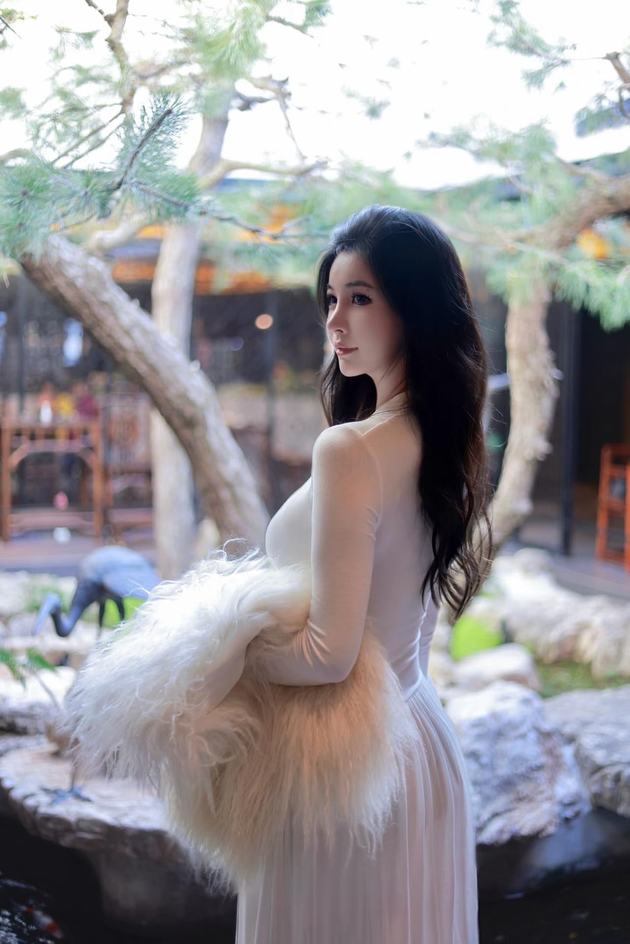 梦幻泳池边,轻纱裙摆飘逸,城市天际线尽收眼底