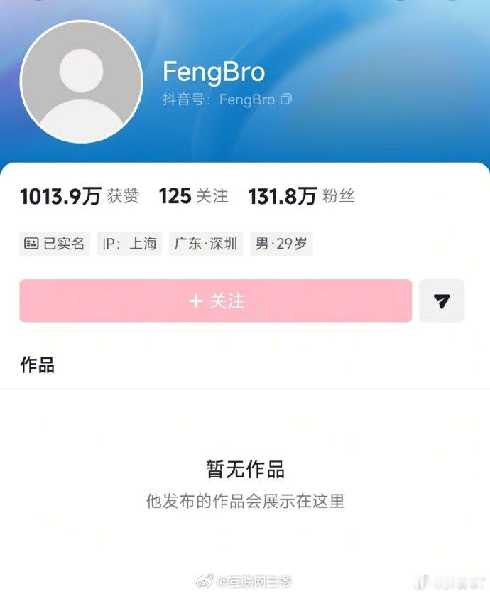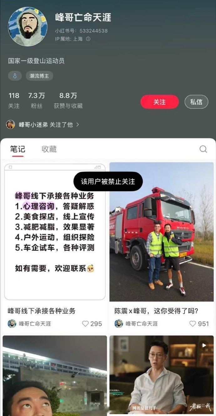 前阵子还刚看峰哥 和震哥 在小鹏测试的活动上,还一起复现了闪灵事件。刚刚看网友说他微博被禁言了,试了下小红书B站和抖音,这次好像是全平台都禁止关注了,DY账号已被清空头像及昵称~